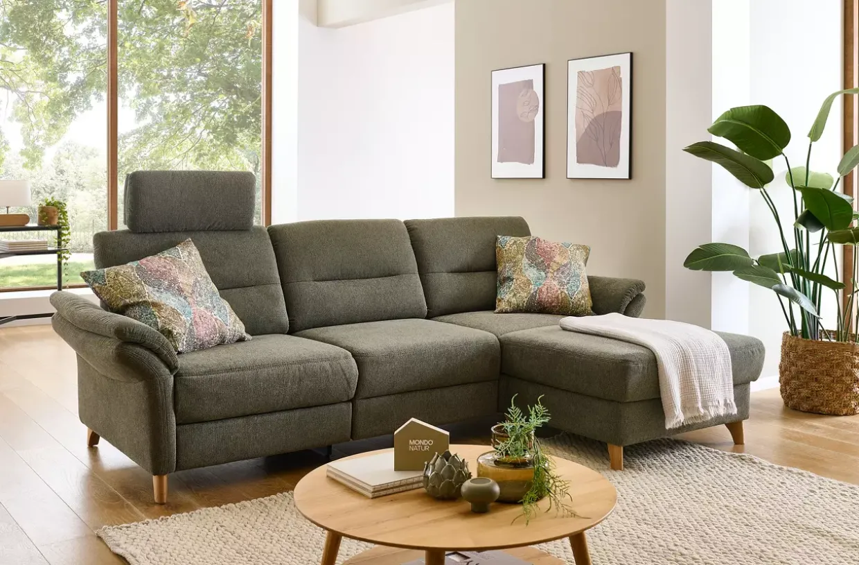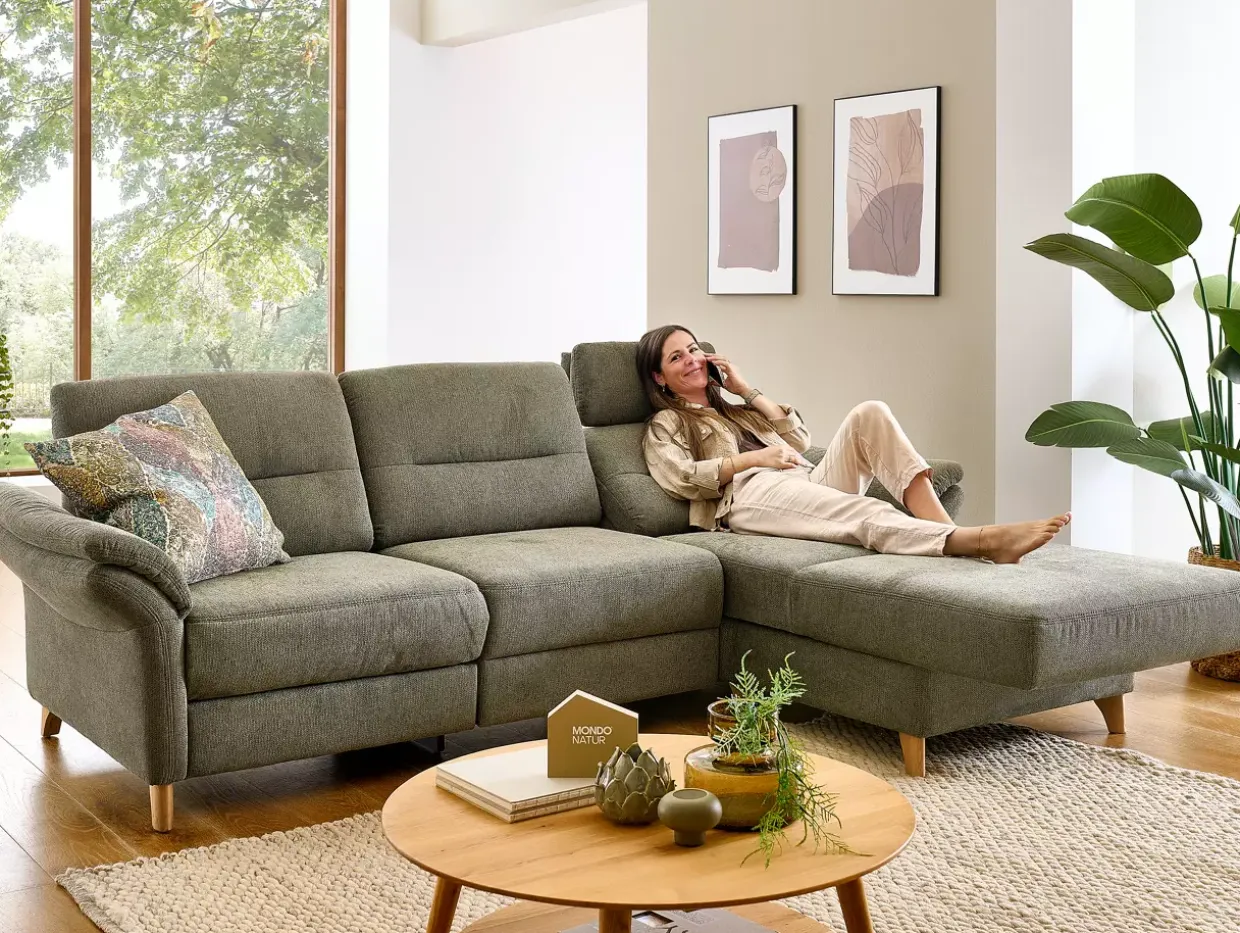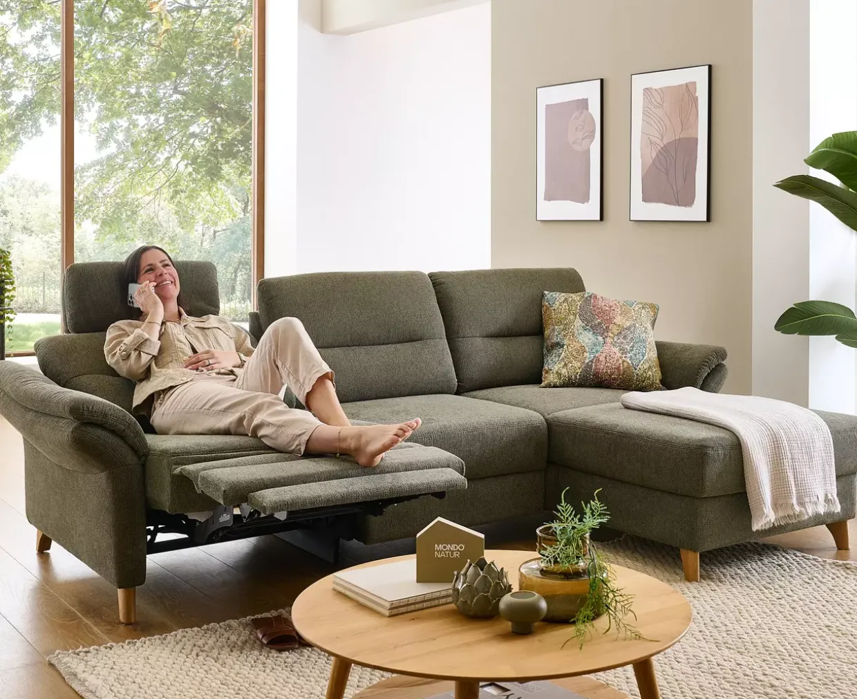 Ein Hauch von Cottage-Charme trifft auf moderne Funktionalität: Das Polstermöbel aus hochwertiger Eiche vereint Tradition und Innovation. Die geölte Oberfläche verleiht dem Möbelstück einen natürlichen und zeitlosen Look, der sich harmonisch in Ihr Zuhause einfügt. Elegant auf den ersten Blick, überzeugt das Sofa durch seine durchdachten Funktionen. Die Kopfteilverstellung sorgt für individuellen Komfort, während die motorische Sitzvorzug-Funktion im Longchair durch Sensorsteuerung ein luxuriöses Sitzerlebnis bietet. Die Kombination aus Stoff und Holz schafft eine gemütliche Atmosphäre, die durch den Ton-in-Ton-Faden dezent unterstrichen wird. Besonders hervorzuheben sind die Kopfstützentaschen, die nicht nur praktisch, sondern auch stilvoll sind. Dank der Federkernpolsterung genießen Sie optimalen Sitzkomfort, der durch den Echtbezug auf der Rückseite ergänzt wird. Diese Details machen das Polstermöbel zu einem langlebigen Begleiter in Ihrem Wohnraum. Der „Wallfree“-Mechanismus mit komfortabler Kopfstütze und Klappfunktion bietet Flexibilität und Bequemlichkeit. Mit acht verfügbaren Kombinationen passt sich das Möbelstück perfekt Ihren individuellen Bedürfnissen an. Ein Möbelstück, das Ästhetik und Nutzen in Einklang bringt und dabei höchsten Ansprüchen gerecht wird. Entdecken Sie die vielfältigen Möglichkeiten und genießen Sie das Zusammenspiel aus traditioneller Handwerkskunst und moderner Technik.