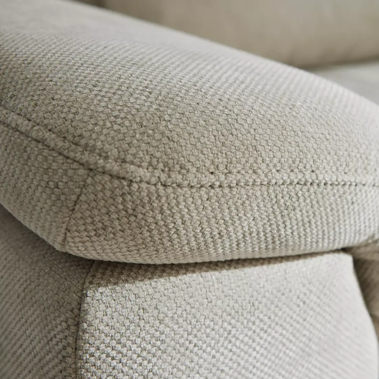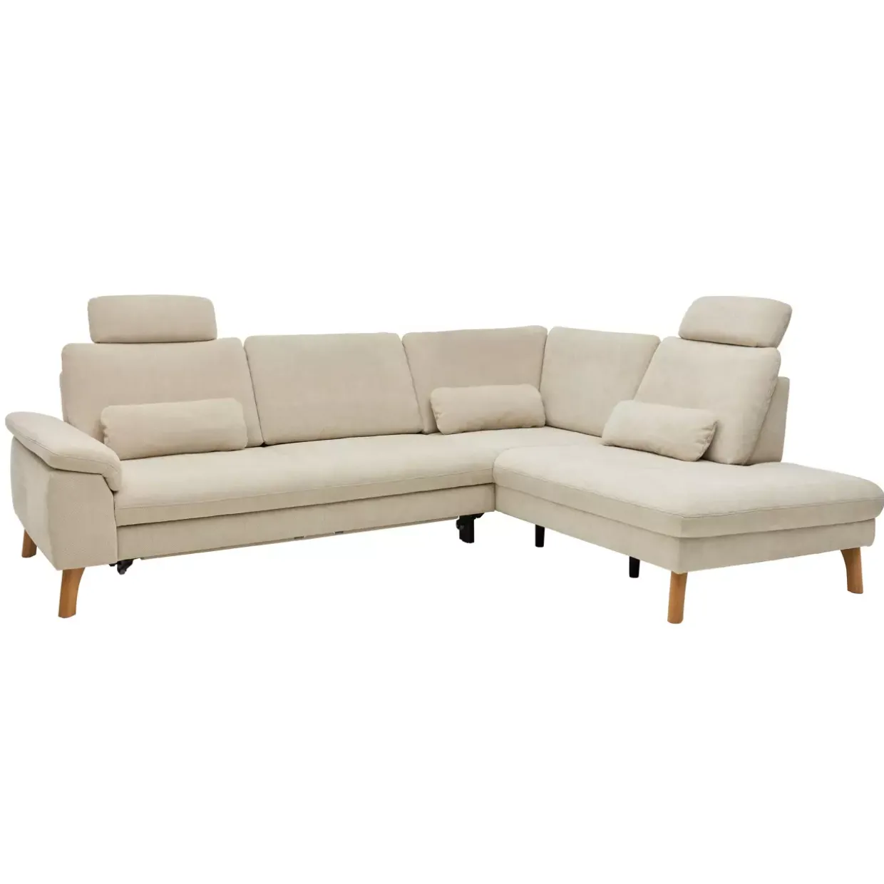 Ein Hauch von Eleganz entfaltet sich in der Kombination aus Cody Beige und Wildeiche. Diese Polstergarnitur strahlt durch ihre klassische Gestaltung zeitlose Schönheit aus. Die Verwendung von Wildeiche und hochwertigen Stoffen verleiht der Garnitur nicht nur Beständigkeit, sondern auch eine warme, einladende Atmosphäre. Ein besonderes Augenmerk liegt auf der vielseitigen Funktionalität: Die Armteilverstellung ermöglicht eine individuelle Anpassung für maximalen Komfort. Der Querschläfer bietet eine praktische Bettfunktion, während die Sitztiefenverstellung zusätzlichen Sitzkomfort gewährleistet. Stil trifft auf Funktionalität mit der durchdachten Kaltschaumfüllung, die für eine angenehme Sitz- und Liegeerfahrung sorgt. Die Echtbezug-Liegefläche unterstreicht den Anspruch auf Qualität und Langlebigkeit. Zwei Kopfstützen, die in Höhe und Neigung verstellbar sind, bieten zusätzlichen Halt und Entspannung. Die dezente Kappnaht, bewusst ohne Kontrastfaden, fügt sich harmonisch in das Gesamtbild ein und lässt die Polstergarnitur in ihrer vollen Schönheit erstrahlen. Diese Polstergarnitur ist mehr als nur ein Möbelstück – sie ist ein Ort der Erholung und des Stils, der sich nahtlos in jedes Zuhause einfügt und jeden Raum aufwertet.