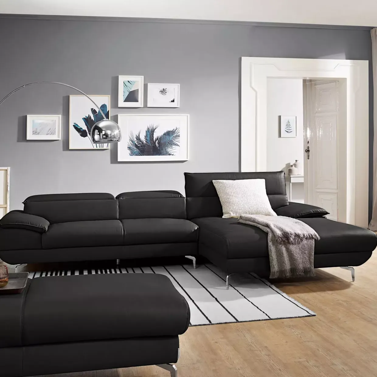 Eleganz trifft auf Komfort mit der Hoya Polstergarnitur. Diese moderne Sitzgelegenheit überzeugt durch ihre glänzende Oberfläche und exquisite Materialwahl, bestehend aus hochwertigem Leder, edlem Holz und robustem Metall. Ihre zeitlose Ausstrahlung wird durch die geschmackvolle Biese an Rücken und Seitenteilen unterstrichen, was sie zu einem stilvollen Blickfang in jedem Raum macht.