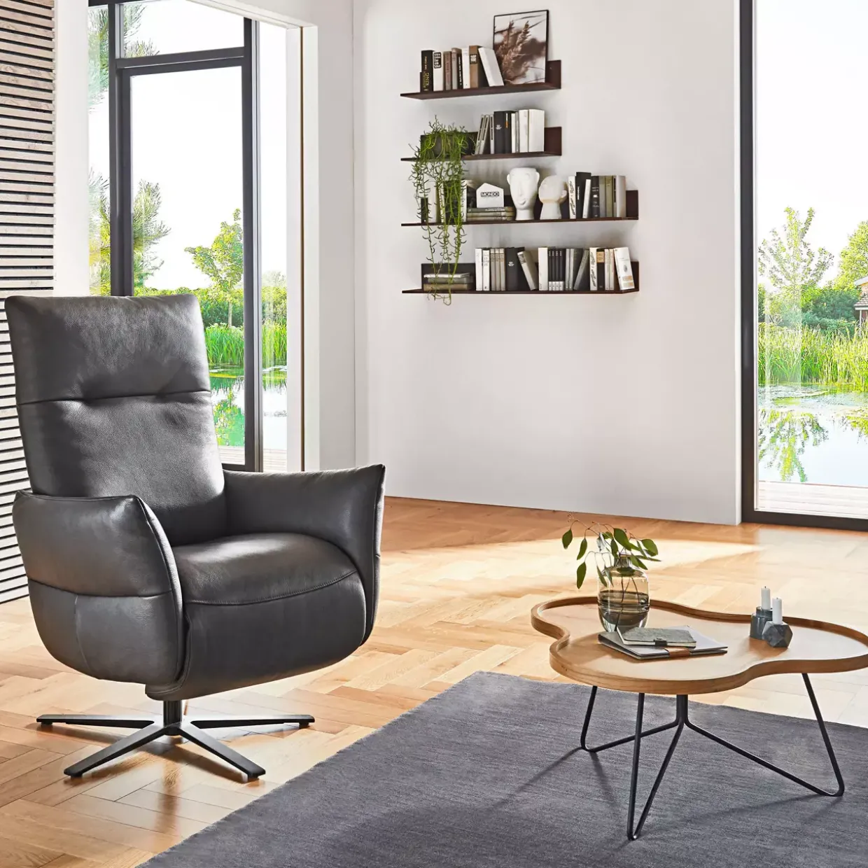 Die Felini MONDO Lounge RelaXX beeindruckt durch ihre moderne Ästhetik und hochwertige Materialien. Ein edles Zusammenspiel von Leder und Metall verleiht diesem Möbelstück eine zeitlose Eleganz. Die anthrazitfarbene Lederoberfläche, bekannt als Vorzugs-Leder Reno, harmoniert perfekt mit den schwarz matt lackierten Metallakzenten und sorgt für ein stilvolles Ambiente in Ihrem Wohnraum.
