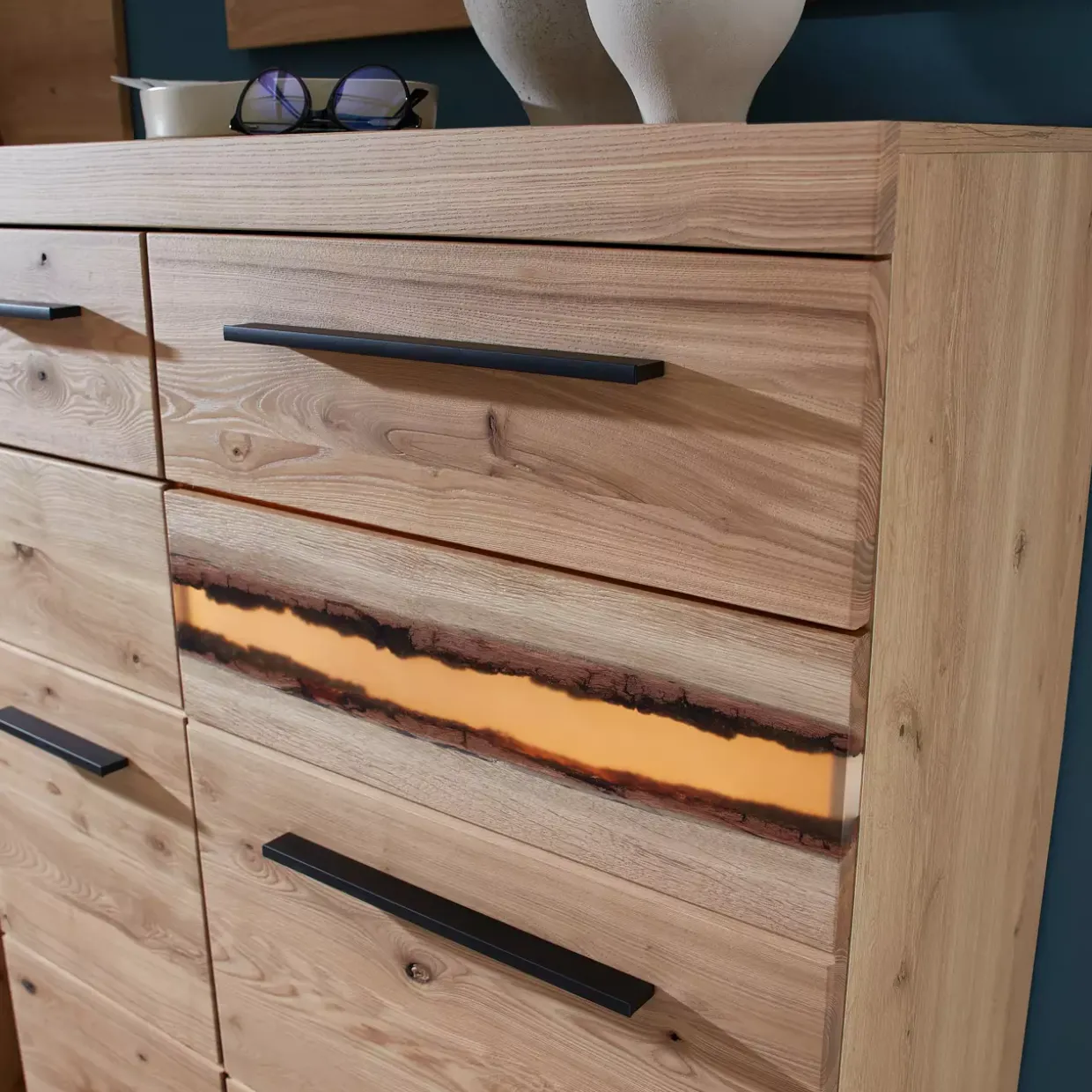 Die Verwendung von massiv gebürsteter Altesche in Kombination mit den modernen Materialien unterstreicht den hochwertigen Anspruch des Möbelstücks. Für alle, die auf der Suche nach einer stilvollen und gleichzeitig praktischen Lösung für ihre Schuhe sind, bietet dieser Schuhschrank eine ideale Wahl. Genießen Sie die perfekte Symbiose aus Design und Funktionalität in Ihrem Zuhause.