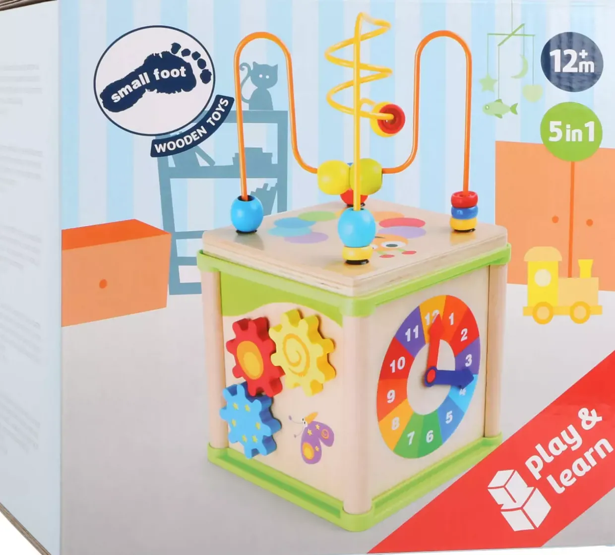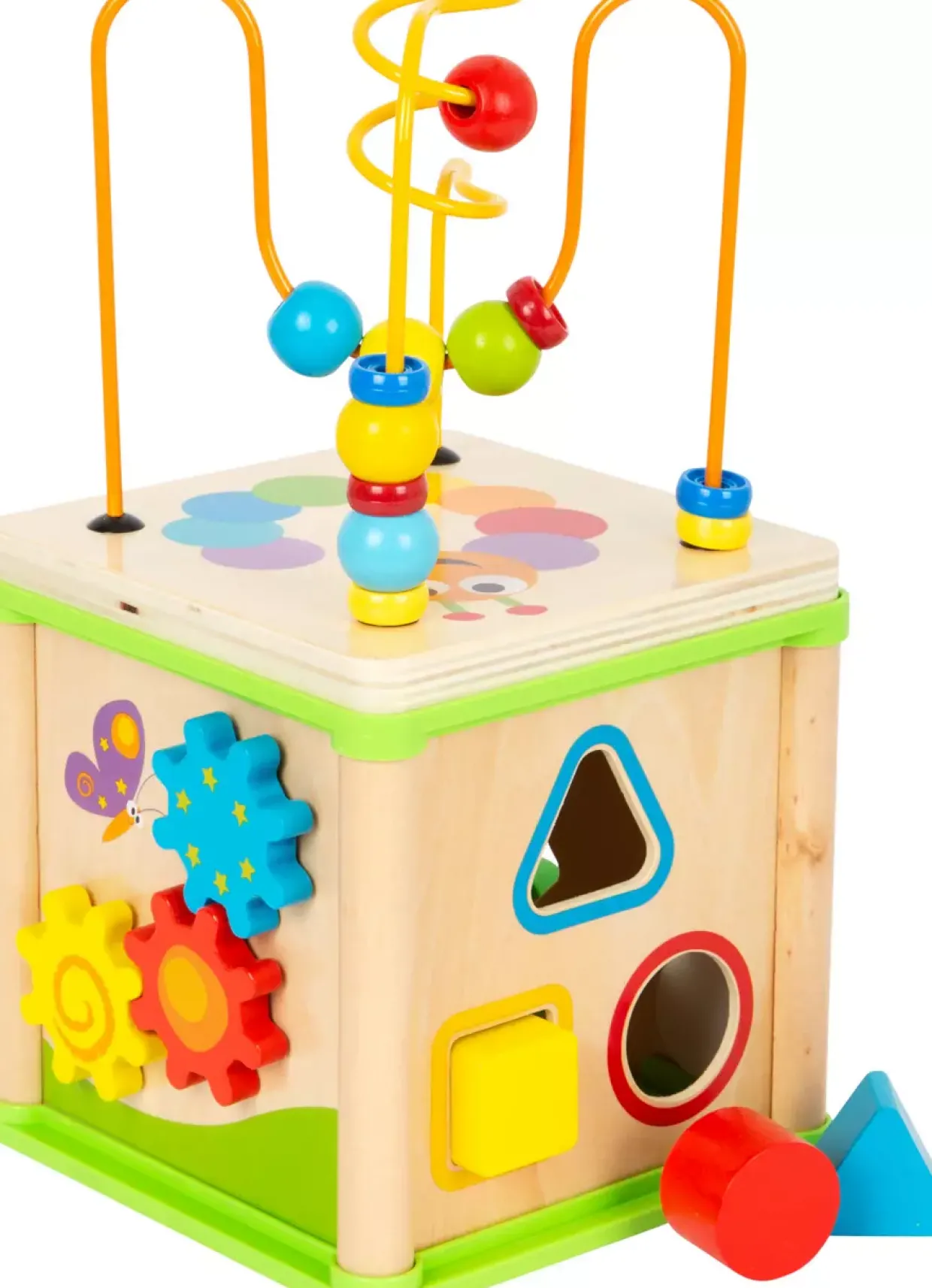 Verschiedene Aktivitäten auf jeder Seite des Würfels fördern spielerisch die Feinmotorik und die Hand-Augen-Koordination der Kleinen. Ob Drehen, Schieben oder Stecken – die verschiedenen Herausforderungen unterstützen die Entwicklung wichtiger motorischer Fähigkeiten. Gleichzeitig wird die Kreativität der Kinder angeregt, während sie neue Möglichkeiten entdecken, mit dem Würfel zu interagieren.