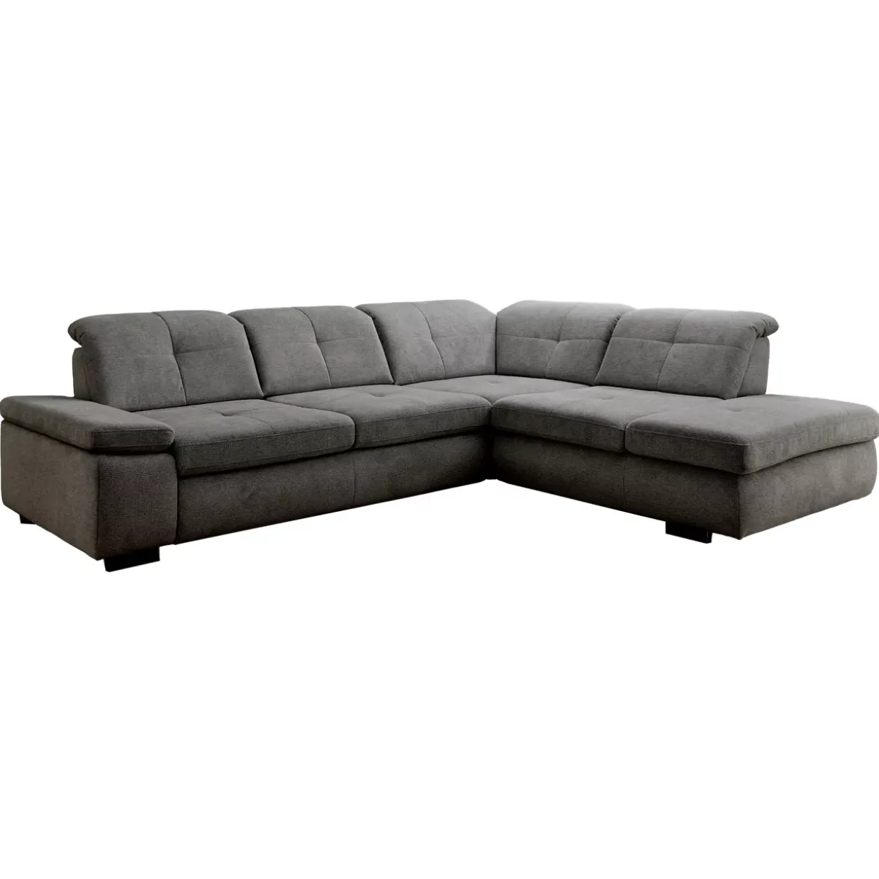 Ein aufklappbarer Anstellhocker bietet zusätzlichen Stauraum und erhöht die Vielseitigkeit dieser eleganten Polstergarnitur. Die Kombination aus hochwertigem Stoff und robustem Metall verleiht diesem Möbelstück eine moderne und zugleich zeitlose Anmutung. Die Möglichkeit der Armteilverstellung auf der linken Seite ermöglicht eine individuelle Anpassung für optimalen Sitzkomfort.