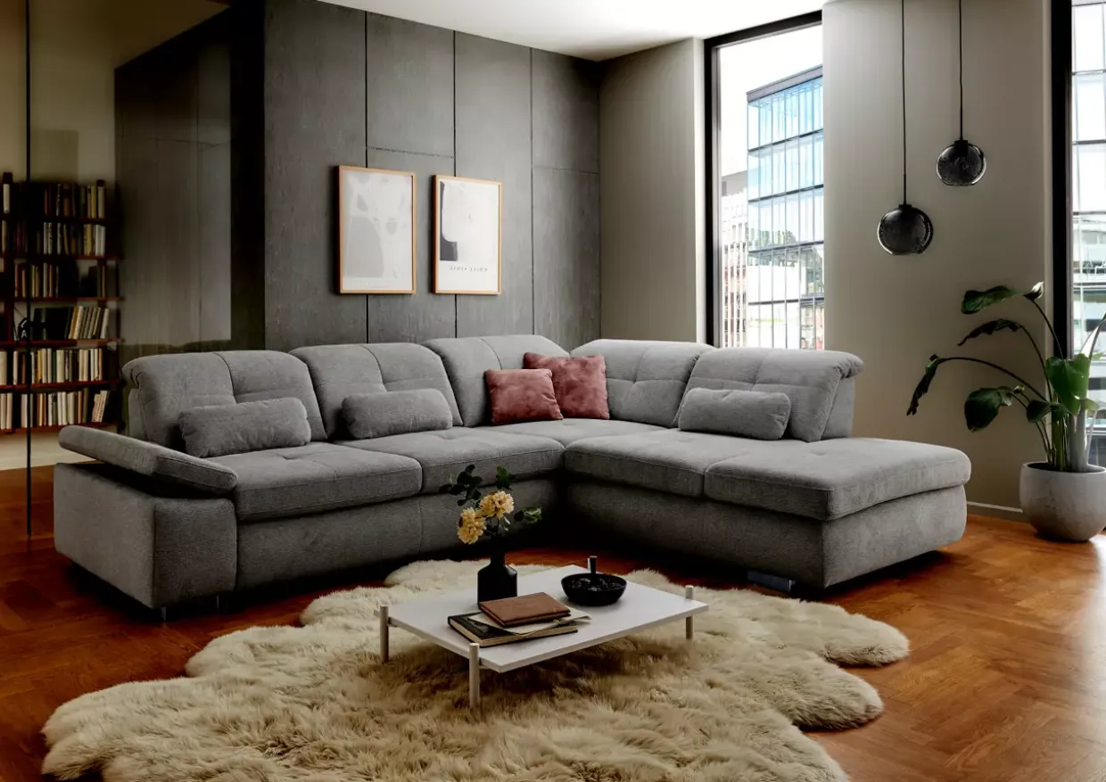 Die Polstergarnitur, ausgestattet mit einer komfortablen Federkernpolsterung, sorgt für ein angenehmes Sitzgefühl und unterstützt eine gesunde Körperhaltung. Für noch mehr Flexibilität bietet die 3-Sitzer-Variante eine praktische Querschläferfunktion, die sich ideal für unerwartete Übernachtungsgäste eignet.