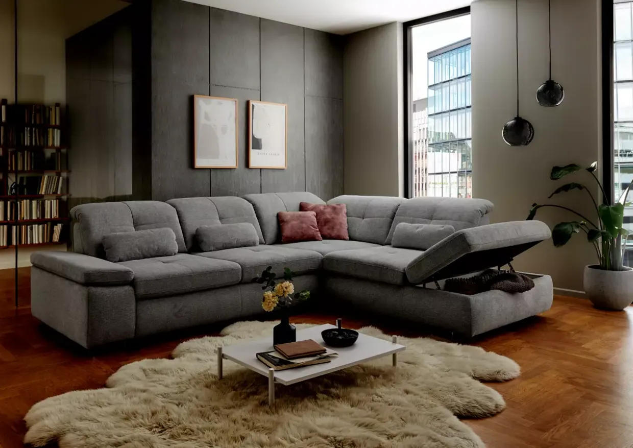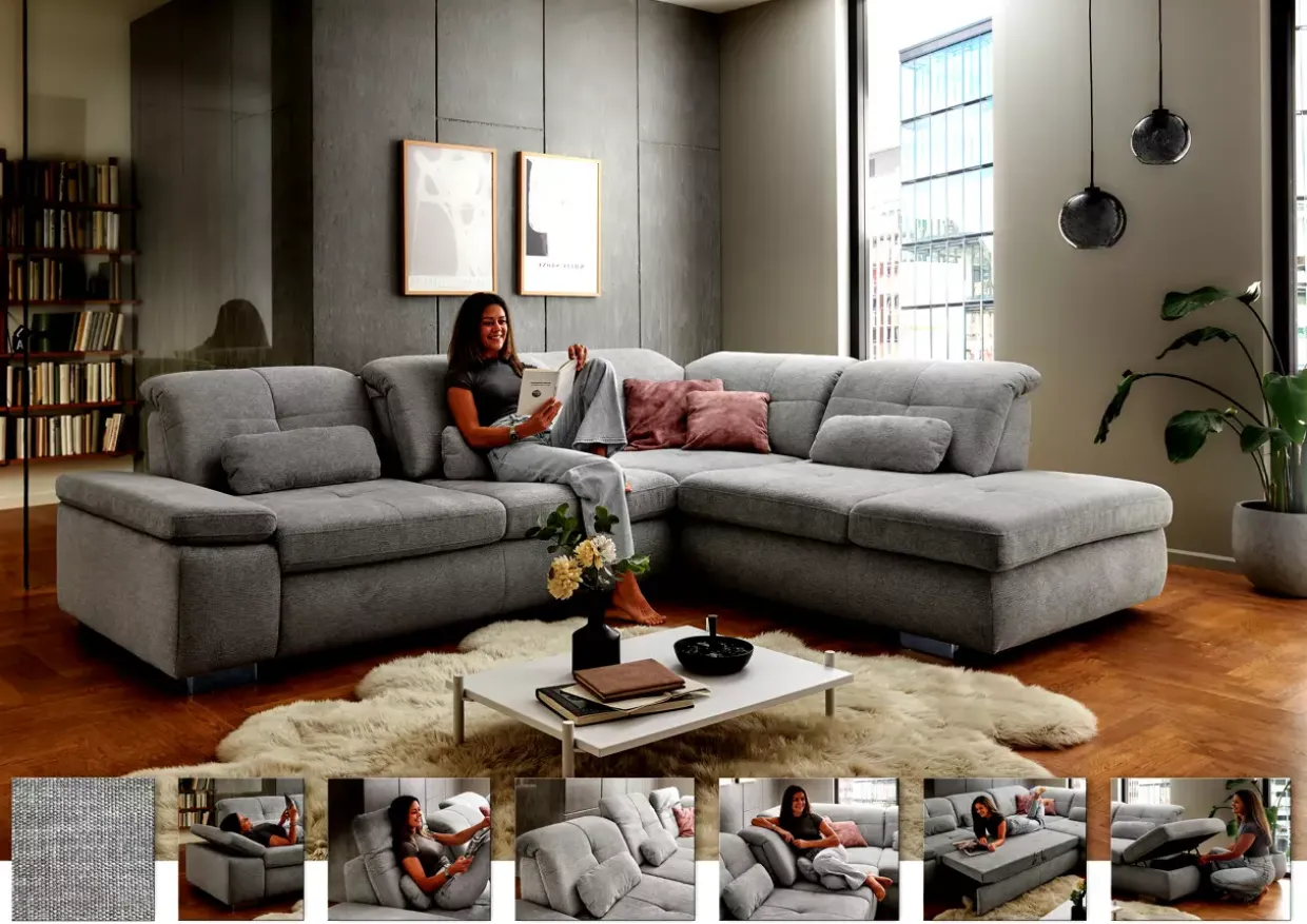 Die harmonische Farbgebung in „Longlife Easy grey“ und Schwarz fügt sich nahtlos in verschiedene Einrichtungsstile ein und schafft eine einladende Atmosphäre. Diese Polstergarnitur stellt somit eine perfekte Verbindung von Komfort, Funktionalität und Ästhetik dar, die in jedem Wohnraum Akzente setzt. Genießen Sie die Flexibilität und den Komfort, den dieses Möbelstück in Ihren Alltag bringt.
