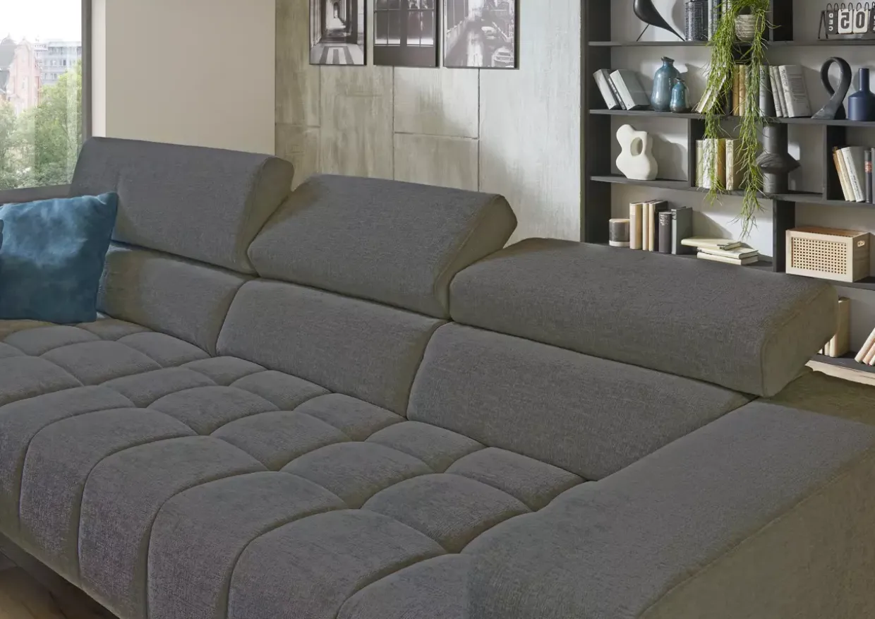 Ein besonderes Highlight ist die Kopfteilverstellung, die individuellen Komfort ermöglicht. Die Kaltschaumfüllung sorgt für angenehmen Sitzkomfort und unterstützt die Körperhaltung optimal. Die Polstergarnitur bietet zusätzlich Echtbezug im Rückenbereich, was die Langlebigkeit und Qualität unterstreicht.