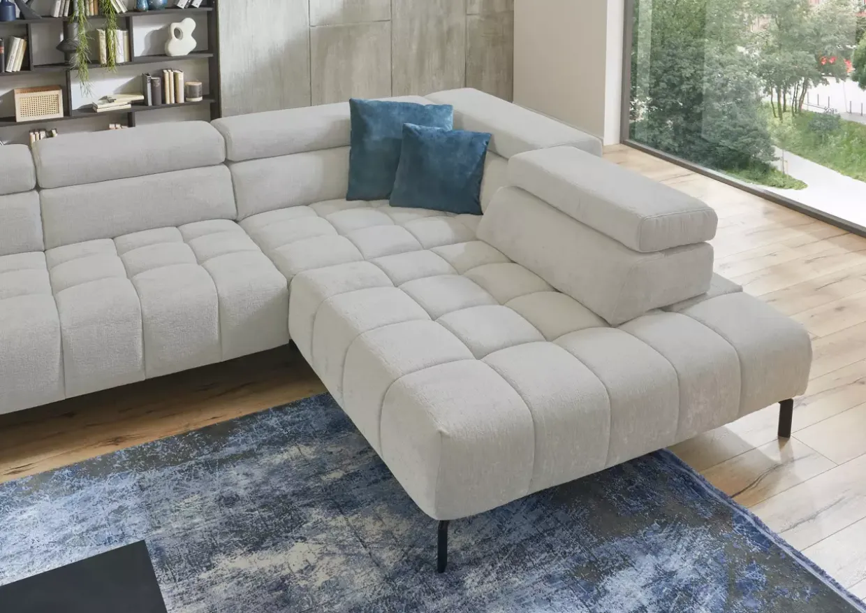 bestehend aus: 1 2.5-Sitzer Armlehne links / 1 Spitzecke groß / 1 1.5-Sitzermit Anstellhocker rechts