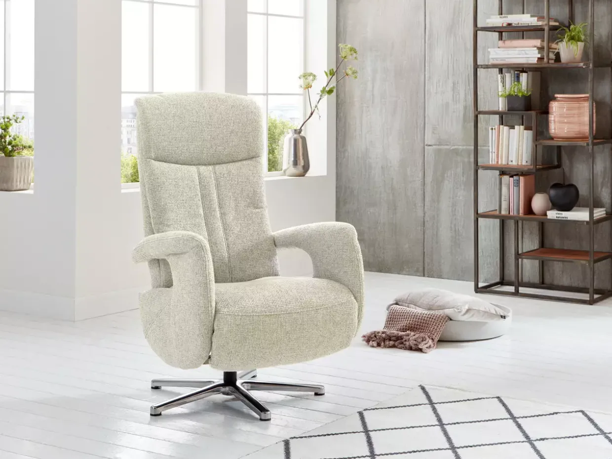 Eleganz trifft Komfort: Der Relax-Sessel beeindruckt mit einem modernen Stil, der sich nahtlos in jedes zeitgemäße Interieur einfügt. Die Kombination aus Stoff und verchromtem Aluminium verleiht dem Sessel eine edle Anmutung. Ein herausragendes Merkmal ist die 360 Grad Drehbarkeit, die Flexibilität und Bewegungsfreiheit ermöglicht. Die Relaxfunktion lädt dazu ein, Momente der Entspannung zu genießen. Dank der höhenverstellbaren Spindel lässt sich der Sessel individuell anpassen. Die stufenlose Rückenverstellung durch eine Gasdruckfeder sorgt für optimalen Sitzkomfort. Ein solides Gestell aus Metall, Hartholz und anderen Holzwerkstoffen garantiert Langlebigkeit und Stabilität.Der Sitz ist aus hochwertigem Polyätherschaum gefertigt, ummantelt mit Polstervlies und unterstützt durch dauerelastische Wellenfedern. Dies sorgt für ein angenehmes Sitzgefühl und eine ausgezeichnete Formstabilität. Der Rücken, ausgestattet mit hochwertigen Polstergurten und ebenfalls aus Polyätherschaum, bietet zusätzlichen Komfort. Der Relax-Sessel ist nicht nur ein Möbelstück, sondern eine Oase der Ruhe inmitten des hektischen Alltags. Seine durchdachten Funktionen und die qualitativ hochwertigen Materialien machen ihn zu einer idealen Wahl für alle, die Wert auf Qualität und Design legen. Lassen Sie sich in eine Welt des Wohlbefindens entführen.