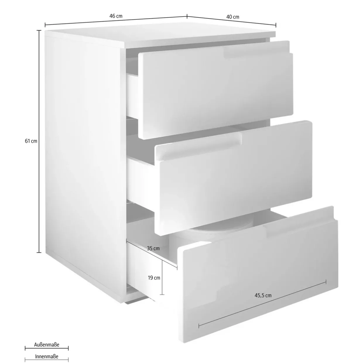 In einem Set von drei Stück bietet diese Kommode ausreichend Stauraum für Ihre persönlichen Gegenstände. Ob im Schlafzimmer, Flur oder Wohnzimmer – sie fügt sich nahtlos in unterschiedliche Einrichtungskonzepte ein. Diese Flexibilität macht sie zu einer idealen Wahl für die moderne Wohnungseinrichtung.