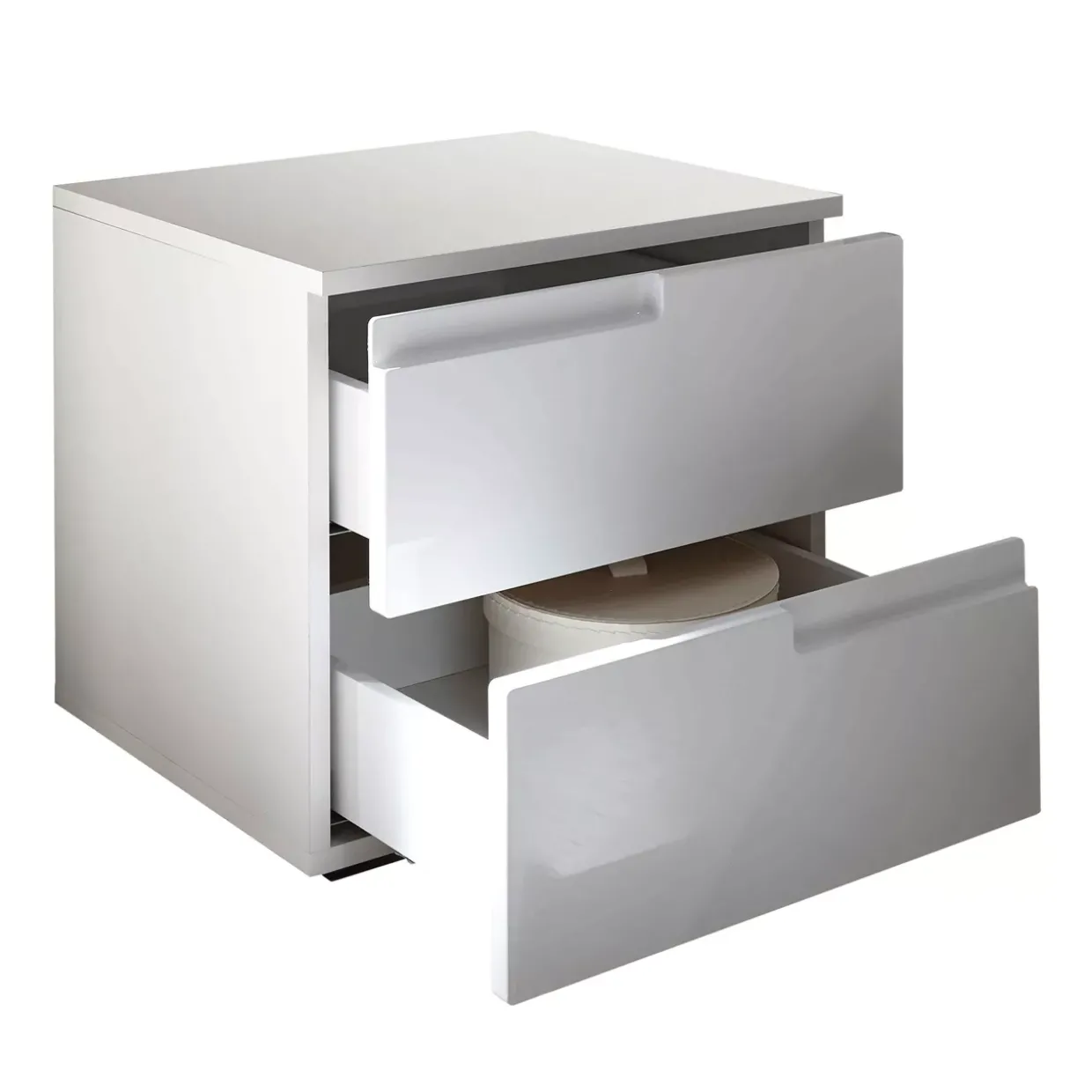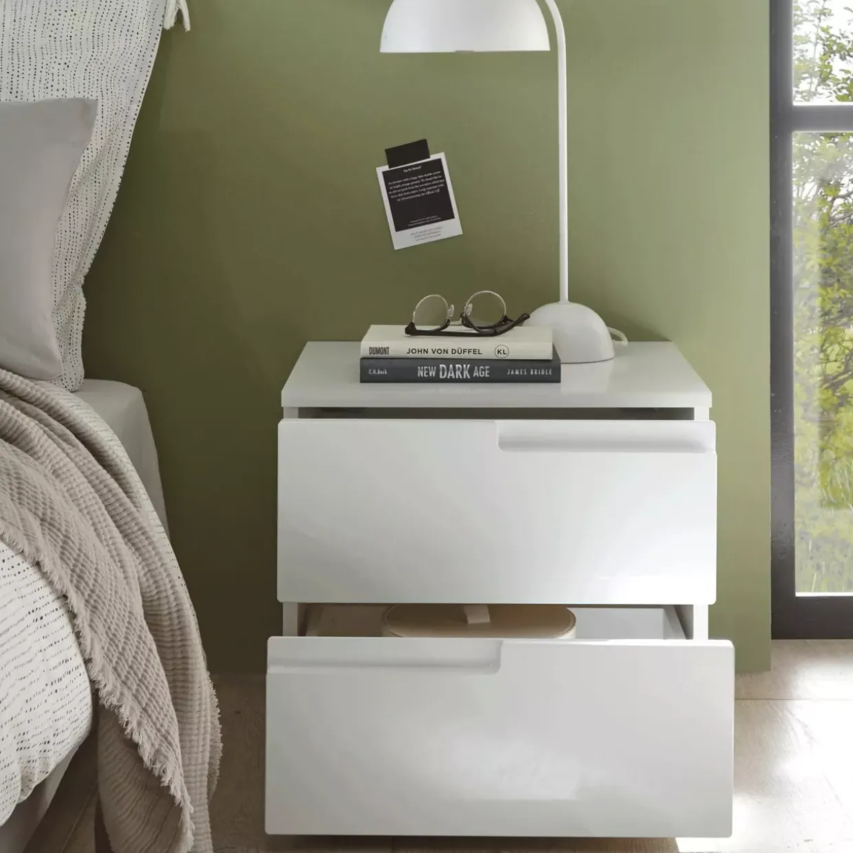 Zwei Exemplare dieser modernen Nachtkommoden bieten ausreichend Platz für Ihre nächtlichen Essenzen. Ob Bücher, eine Leselampe oder persönliche Gegenstände – alles findet hier seinen optimalen Platz. Der minimalistische Stil der Kommoden ergänzt sowohl klassisch als auch modern gestaltete Räume und bietet eine praktische Lösung für die Organisation am Bett.