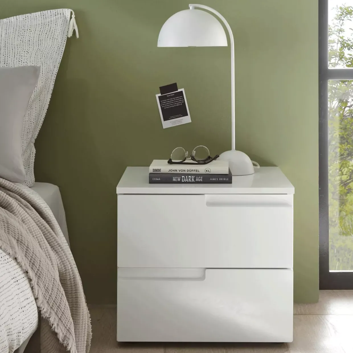 Zeitlose Eleganz trifft auf modernen Stil in der Form dieser Nachtkommoden. Die schlichte weiße Farbgebung fügt sich harmonisch in jedes Schlafzimmer ein und verleiht dem Raum eine ruhige, einladende Atmosphäre. Gefertigt aus hochwertigem Holzwerkstoff, bieten diese Möbelstücke nicht nur ästhetische Anziehungskraft, sondern auch Langlebigkeit und Stabilität.