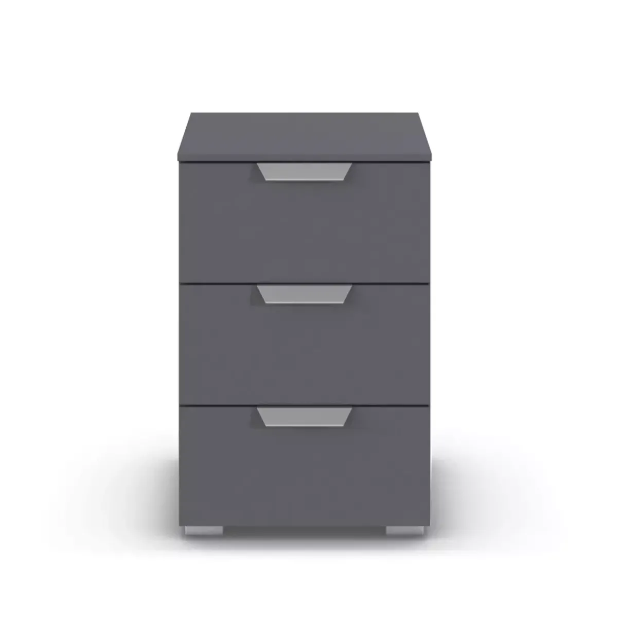 Grau-metallic Dekor trifft auf modernen Stil: Der Aditio Nachttisch vereint zeitgenössisches Design mit funktionaler Eleganz. Drei Schubkästen, ausgestattet mit einem Selbsteinzug und Dämpfung, bieten nicht nur reichlich Stauraum, sondern auch ein Gefühl von Leichtigkeit und Komfort. Dank des Soft-Close-Systems schließen die Schubkästen fast lautlos und schonend, was den täglichen Gebrauch besonders angenehm gestaltet.