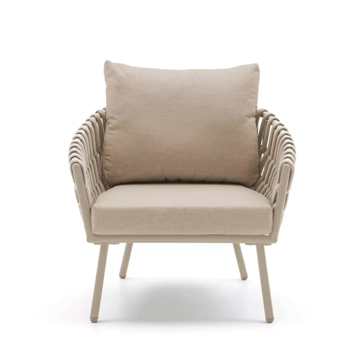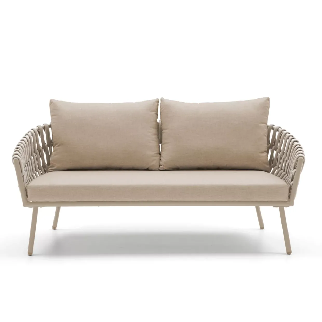 4-tlg.; 1x Tisch: Maße: 80x55xH40cm, Platte: Glas mit Keramik-Finish, 5mm, Farbe: taupe # SYH51 ; 2x Sessel: Maße: 78x77x69cm ; 1x 2-Sitzer Sofa: Maße: 162x77x69cm; Sitzhöhe: 30cm; Aluminiumrohr: O 28×1.5mm,Pulverbeschichtung in matt taupe PT10218; Seil: taupe #OL-6; Kissen: 10cm, grau MH-0888 230g/m2, weiches RückenkissenTaupe als zeitlos elegante Farbwahl verleiht dem Garten-Set eine moderne Note. Dieses stilvolle Ensemble, bestehend aus Glas, Metall und Textil, ist Ihr idealer Begleiter für den Sommer. Das Material Aluminium sorgt nicht nur für eine robuste Struktur, sondern bringt auch Leichtigkeit in die Konstruktion. Pulverbeschichtete und beschichtete Oberflächen garantieren Langlebigkeit und Widerstandsfähigkeit, selbst bei intensiver Nutzung im Freien.Ein Garten-Set dieser Art vereint Ästhetik und Funktionalität in Perfektion. Dank seiner Outdoor-Eignung ist es bestens für jede Gartenparty oder ein entspanntes Abendessen unter freiem Himmel geeignet. Die Kombination aus Glas, Metall und Textil schafft ein harmonisches Zusammenspiel von Materialien, das jedem Außenbereich einen Hauch von Eleganz verleiht.Die moderne Gestaltung und die hochwertige Materialwahl machen dieses Set zu einem Highlight in Ihrem Garten oder auf der Terrasse. Aluminium, als verwendetes Metall, verspricht nicht nur Stabilität, sondern auch Wetterbeständigkeit. So können Sie die warmen Monate in vollen Zügen genießen, ohne sich Gedanken über die Haltbarkeit Ihrer Gartenmöbel machen zu müssen. Acerras einzigartiges Designkonzept lässt Ihren Außenbereich in neuem Glanz erstrahlen und bietet gleichzeitig maximalen Komfort.