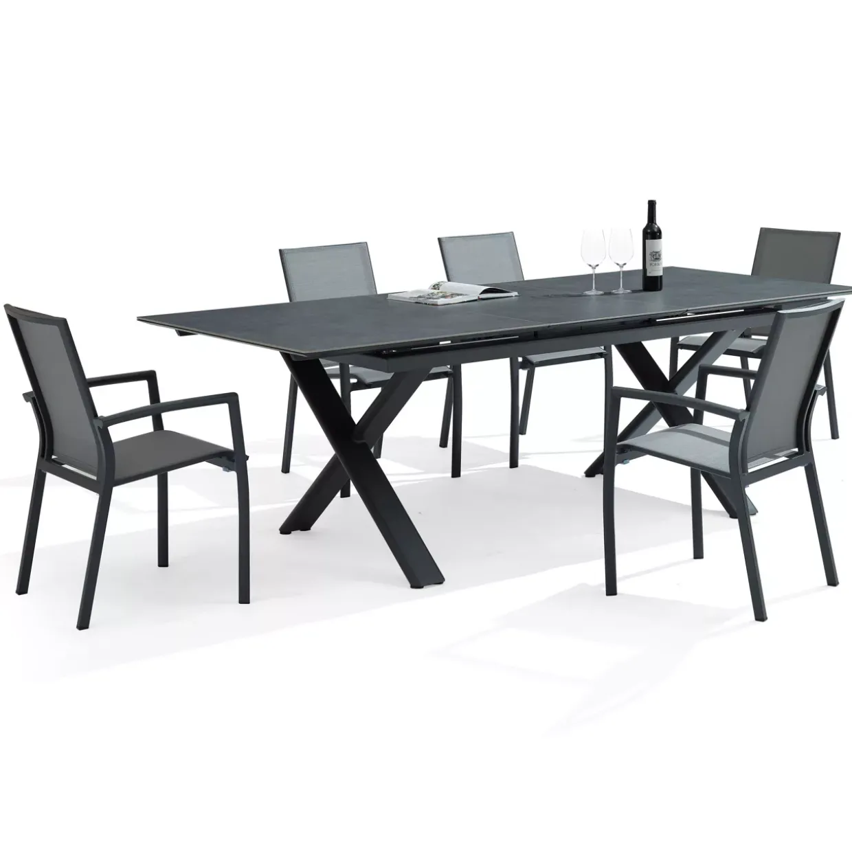 Elegant und funktional – der SAVONA Gartenstuhl verkörpert modernen Stil in Perfektion. Mit einem 4-Fußgestell aus robustem Aluminium präsentiert sich das Design in einer zeitlosen Farbpalette von Grau und Anthrazit. Diese stimmigen Farben fügen sich nahtlos in die sommerliche Atmosphäre Ihres Gartens oder Ihrer Terrasse ein.Sitz und Rückenlehne bestehen aus einem verstärkten Sling-Material, das nicht nur für besonderen Komfort sorgt, sondern auch für eine beeindruckende Langlebigkeit. Die Pulverbeschichtung sorgt für eine widerstandsfähige Oberfläche, die den Elementen standhält und den Stuhl pflegeleicht macht. Das Gestell überzeugt durch einen Alurahmen aus 3D-Rohr, was dem Stuhl eine stabile und zugleich leichte Struktur verleiht.Besonders praktisch ist die Stapelbarkeit des Stuhls, die eine einfache Lagerung ermöglicht, wenn er nicht in Gebrauch ist. Das Zusammenspiel von Kunststoff und Aluminium verleiht dem Stuhl eine moderne Anmutung und gewährleistet gleichzeitig eine hohe Stabilität. Der SAVONA Gartenstuhl ist somit die ideale Wahl für alle, die Wert auf Stil, Komfort und Funktionalität legen. Erleben Sie die perfekte Symbiose aus Design und Praktikabilität in Ihrem Außenbereich.