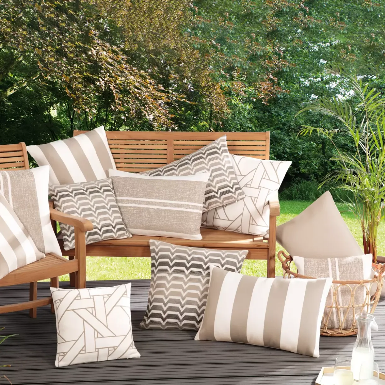 Taupefarbene Eleganz trifft auf modernen Stil in der Java Kissenhülle. Diese Kissenhülle besticht durch ihr zeitloses Streifenmuster, das sich nahtlos in jede Einrichtung einfügt. Dank der hochwertigen Materialien Olefin und Polyacryl bietet die Hülle nicht nur eine angenehme Haptik, sondern auch Langlebigkeit und Widerstandsfähigkeit.