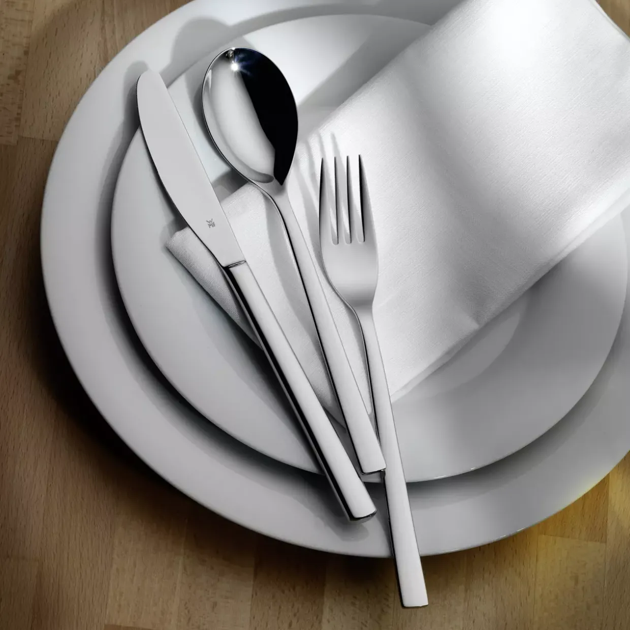 Besteck Palermo: Stilvolle HarmonieKlare, unprätentiöse Konturen, sachlich-zeitgemäße Proportionen: Das Besteck Palermo von WMF begeistert mit stilvoller Harmonie auf dem Tisch und erfreut mit seiner kombinierfreudigen, schlichten Formgebung, die viel …