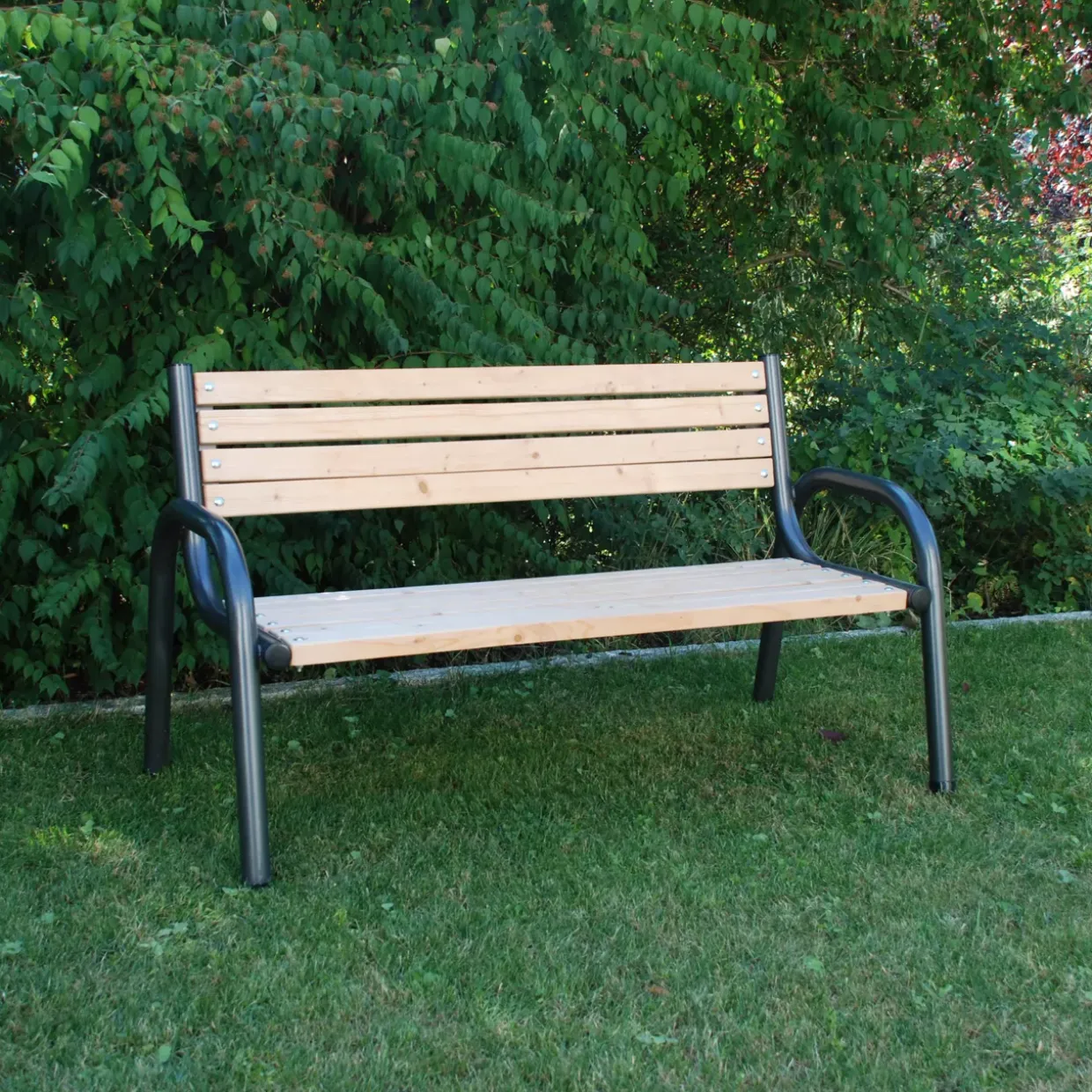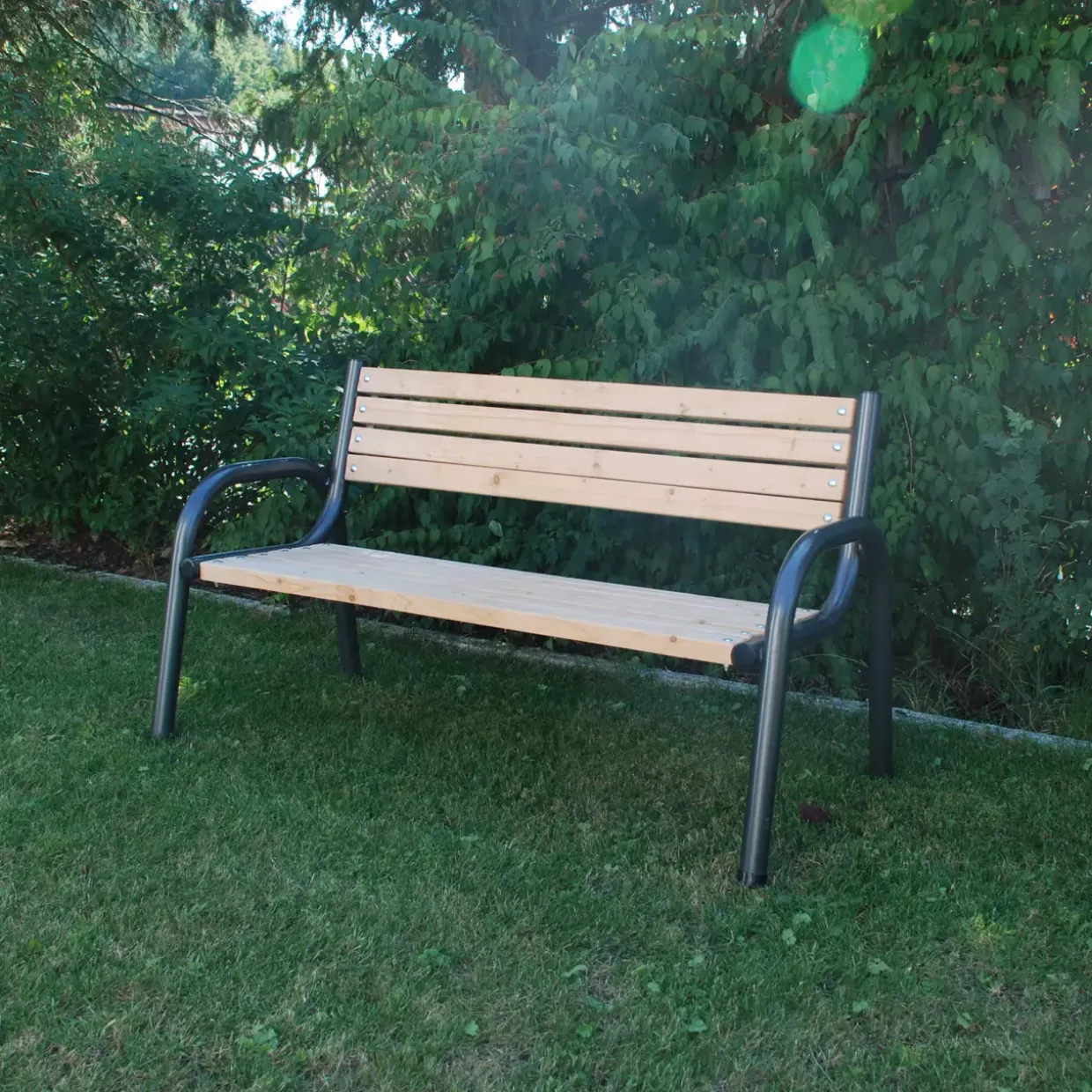 Naturbelassene Materialien spielen eine zentrale Rolle in der Gestaltung dieser Parkbank. Holz sorgt für eine authentische und einladende Atmosphäre, während Metall Stabilität und Langlebigkeit gewährleistet. Diese Kombination macht die Bank nicht nur zu einem optischen Highlight, sondern auch zu einem funktionalen Möbelstück, das den Herausforderungen des Alltags mühelos standhält.