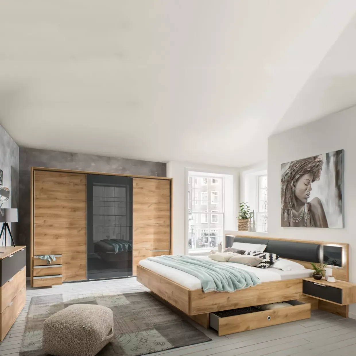 Ein harmonisches Zusammenspiel von Form und Funktion prägt das Design. Die klare Linienführung des Valencia Modells schafft eine ruhige und einladende Atmosphäre, ideal für Wohnräume, die eine moderne Ästhetik suchen. Der Holzwerkstoff bietet nicht nur eine ansprechende Optik, sondern auch eine pflegeleichte Oberfläche, die den Alltag erleichtert.