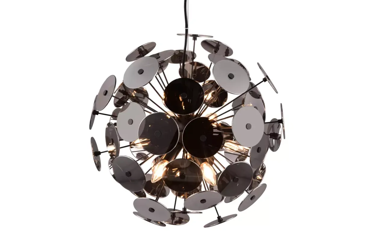 Ein modernes Accessoire für Ihr Wohn- oder Schlafzimmer. Das auffällige Design der Pendelleuchte ist garantiert ein echter Hingucker! Im eingeschalteten Zustand bietet sie ein gelungenes Zusammenspiel zwischen Licht und Schatten. Mit ein wenig Fantasie erinnert die Leuchte an eine Pusteblume und passt genau deshalb zu einem kreativen Einrichtungsstil. Während die Glasscheiben in einem Chrom bedampft das Licht widerspiegeln, bildet das schwarz matte Metall einen nuancenreichen Farbkontrast zum Glas. Für eine energiesparende Beleuchtung empfiehlt sich die Verwendung eines LED Leuchtmittels. Diese sind eine optimale Alternative zu herkömmlichen Halogen Leuchtmitteln und stehen für eine hohe Lichtqualität und eine Energieeinsparung von bis zu 80%. Zusätzlich profitieren Sie bei LED Leuchtmitteln von einer langen Lebensdauer, einer geringen Wärmeentwicklung und schonen gleichzeitig die Umwelt.Erleben Sie die perfekte Kombination aus Eleganz und Modernität mit der Pendelleuchte Discalgo. Diese stilvolle Leuchte in schwarz matt wird aus hochwertigem Metall gefertigt und verleiht Ihrem Raum einen Hauch von Raffinesse. Das Modell Discalgo besticht durch sein zeitloses Design und die chrombedampfte Metallart, die in jedem Ambiente Akzente setzt. Mit einem beeindruckenden Durchmesser von 54 cm und einer maximalen Höhe von 150 cm sorgt diese Leuchte für eine beeindruckende Ausleuchtung und fügt sich nahtlos in Ihre Raumgestaltung ein.Die Discalgo Pendelleuchte ist nicht nur ein optisches Highlight, sondern auch funktional durchdacht. Dank der Retrofit-Funktion können Sie energiesparende Leuchtmittel der Fassung E14 einsetzen, die nicht im Lieferumfang enthalten sind. Zudem ist die Leuchte höhenverstellbar, sodass Sie die Lichtquelle individuell an Ihre Bedürfnisse anpassen können. Die mattierte Oberfläche verleiht der Leuchte eine edle Optik, die durch die CE- und RoHS-Zertifizierung bestätigt wird. Mit einer maximalen Leistung von 40 Watt pro Leuchtmittel bietet die Discalgo sowohl Funktionalität als auch Effizienz.Diese Pendelleuchte eignet sich ideal für die Deckenmontage und ist ein Muss für Liebhaber moderner Wohnkultur. Die Netzbetrieb-Leuchte ist IP20-zertifiziert und somit bestens für den Innenbereich geeignet. Die Discalgo Pendelleuchte überzeugt nicht nur durch ihre ästhetischen Merkmale, sondern auch durch ihre umweltfreundlichen Zertifikate wie REACH und RoHS. Mit dieser Leuchte setzen Sie nicht nur auf stilvolles Design, sondern auch auf Nachhaltigkeit und Qualität. Bereichern Sie Ihr Zuhause mit der Discalgo Pendelleuchte und erleben Sie das Zusammenspiel von Form und Funktion.