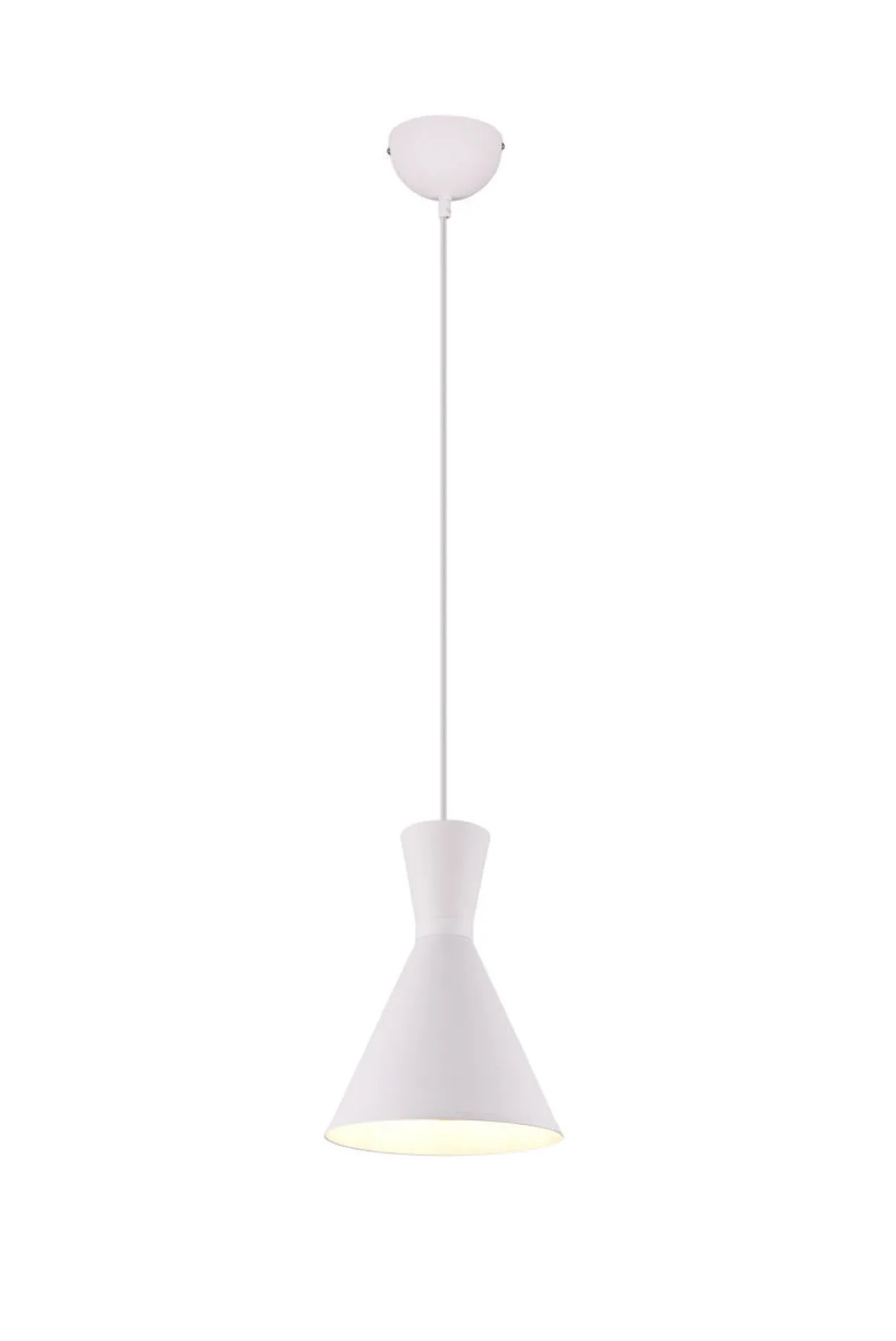 Rund und modern, die Pendelleuchte Enzo vereint zeitgemäßes Design mit funktionaler Eleganz. Diese Leuchte, in einem stilvollen Weißton gehalten, fügt sich harmonisch in verschiedenste Wohnbereiche ein und sorgt für eine angenehme Lichtstimmung. Der aus Metall gefertigte Lampenschirm verleiht der Leuchte Stabilität und eine hochwertige Optik. Besonders hervorzuheben ist die mattierte Oberfläche, die für eine dezente und edle Ausstrahlung sorgt.