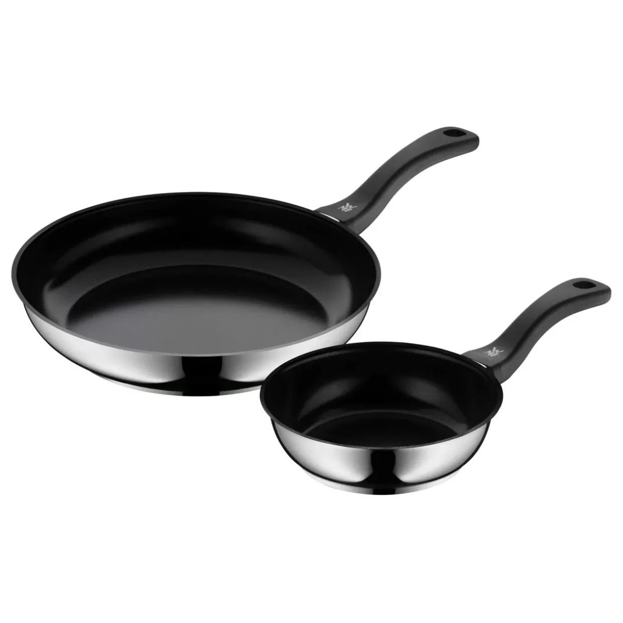 Ein edelstahlglänzendes Finish verleiht dem 2-teiligen Pfannen-Set „Devil“ von WMF eine ansprechende Eleganz. Vielseitige Verwendungsmöglichkeiten und hervorragende Bratergebnisse zeichnen dieses Set aus. Ob knackiges Gemüse, edler Fisch oder leckere Fleischgerichte – die robusten Pfannen sind ideal für abwechslungsreiche Pfannengerichte in der täglichen Küche.