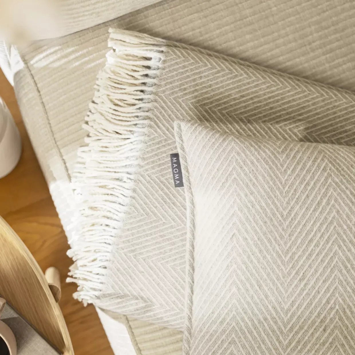 Ein Hauch von Natürlichkeit verleiht dem rechteckigen Plaid MERIDA seinen besonderen Charme. Die moderne Gestaltung trifft auf den natürlichen Farbton, der sich nahtlos in jedes Ambiente einfügt. Gefertigt aus hochwertigem Jaquard-Mischgewebe, bietet das Plaid nicht nur optische, sondern auch haptische Vorzüge.