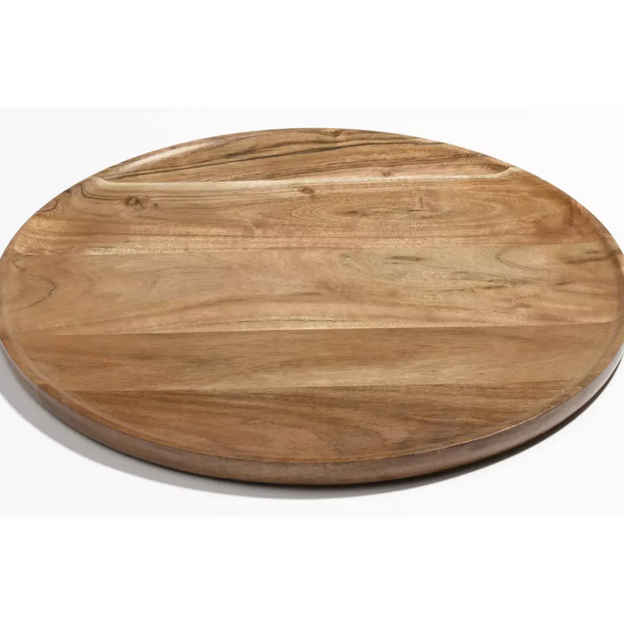 Akazienholz, bekannt für seine Festigkeit und Langlebigkeit, macht dieses Stück zu einer wertvollen Ergänzung für Ihr Serviergeschirr. Die Struktur des Holzes verleiht jeder Platte einen individuellen Charakter, sodass kein Stück dem anderen gleicht. Jedes Detail wird sorgfältig gefertigt, um sowohl ästhetischen als auch funktionalen Ansprüchen gerecht zu werden.