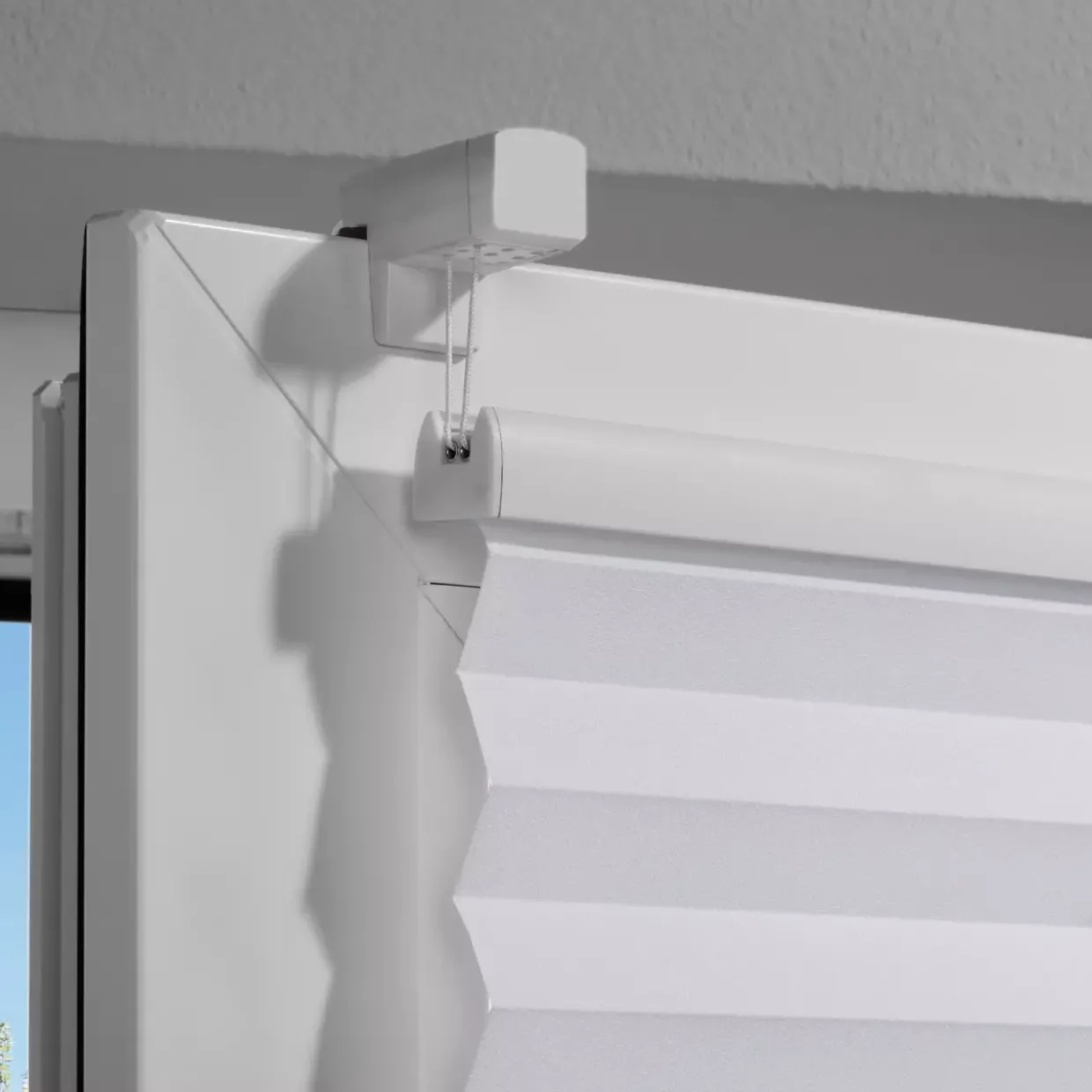Ein weiterer Vorteil ist die einfache Montage. Ohne Bohren lässt sich das Plissee direkt am Fensterrahmen anbringen, was es ideal für Mietwohnungen macht. Darüber hinaus fügt sich das dezente Weiß mühelos in verschiedene Einrichtungsstile ein, von minimalistisch bis klassisch.