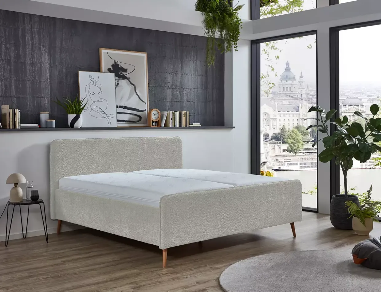 Ein umlaufender, fester gepolsterter Rahmen, bezogen mit hochwertigem Möbelstoff, verleiht dem Polsterbett Salida eine elegante Note. Die moderne Stilrichtung harmoniert perfekt mit den klaren Linien und der schlichten Eleganz dieses Bettes. Aus robuster Buche gefertigt, kombiniert mit Holzwerkstoffen und einem angenehmen Stoffbezug, bietet das Bett sowohl Stabilität als auch Komfort.