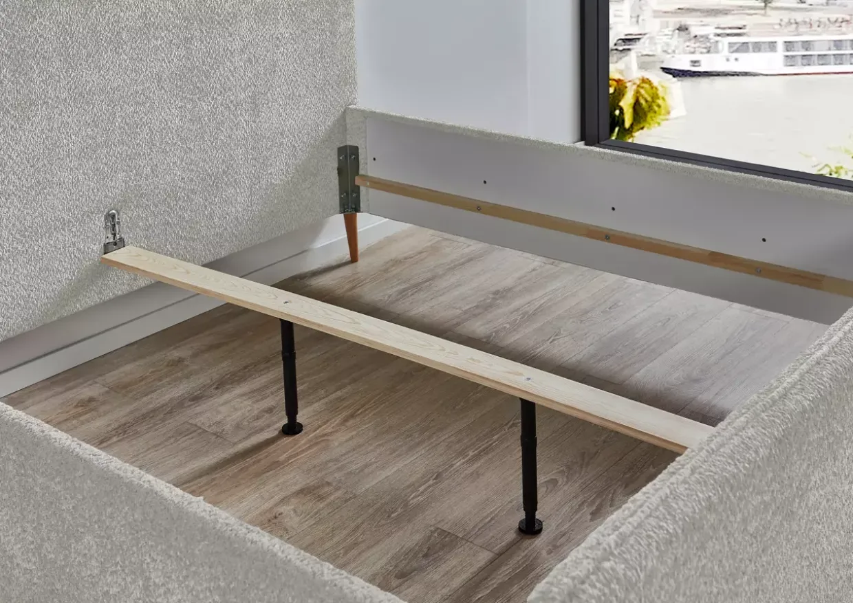 Ein weiteres praktisches Merkmal ist die höhenverstellbare Lattenrost-Auflagen-Leiste, die in zwei verschiedenen Höhen eingestellt werden kann. Dies ermöglicht es Ihnen, die Schlafhöhe individuell anzupassen und gleichzeitig den Komfort zu maximieren. Das Bett ist somit nicht nur ein stilvolles Möbelstück, sondern auch funktional und anpassungsfähig an Ihre Bedürfnisse.