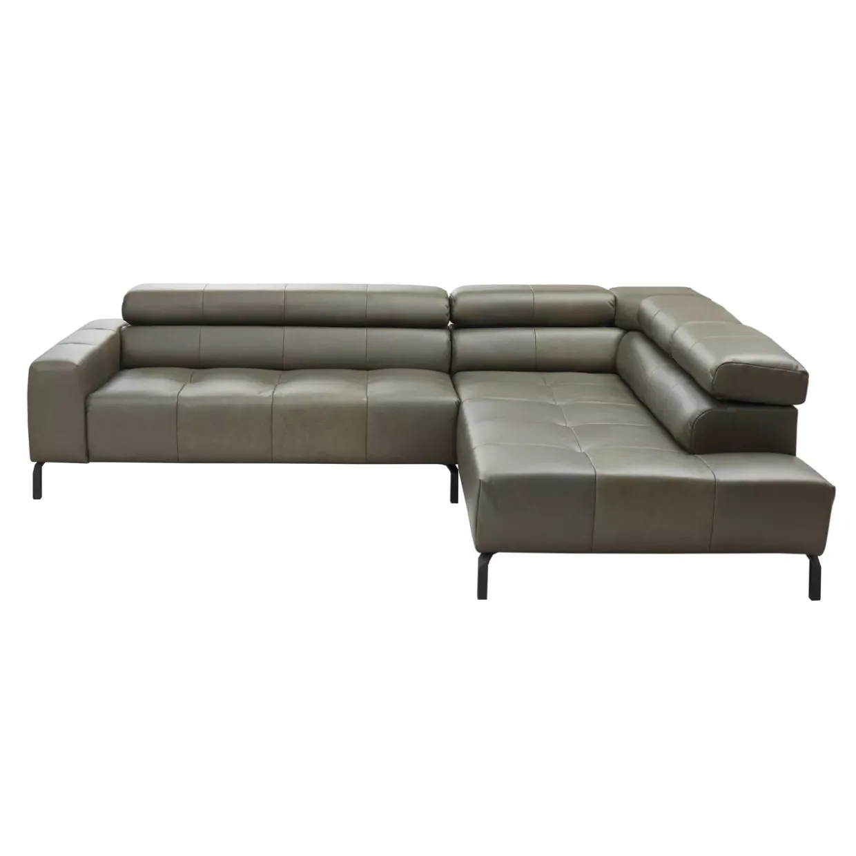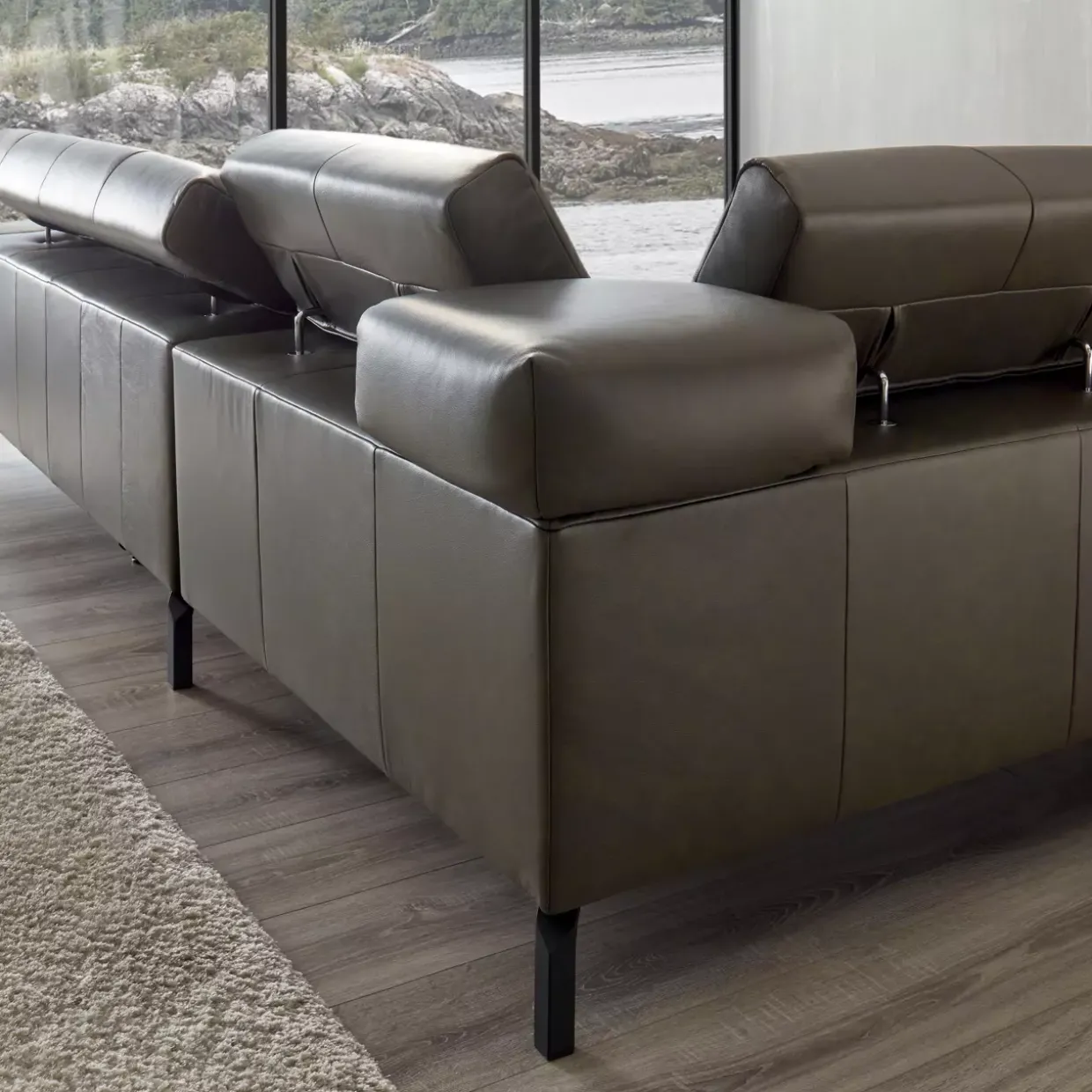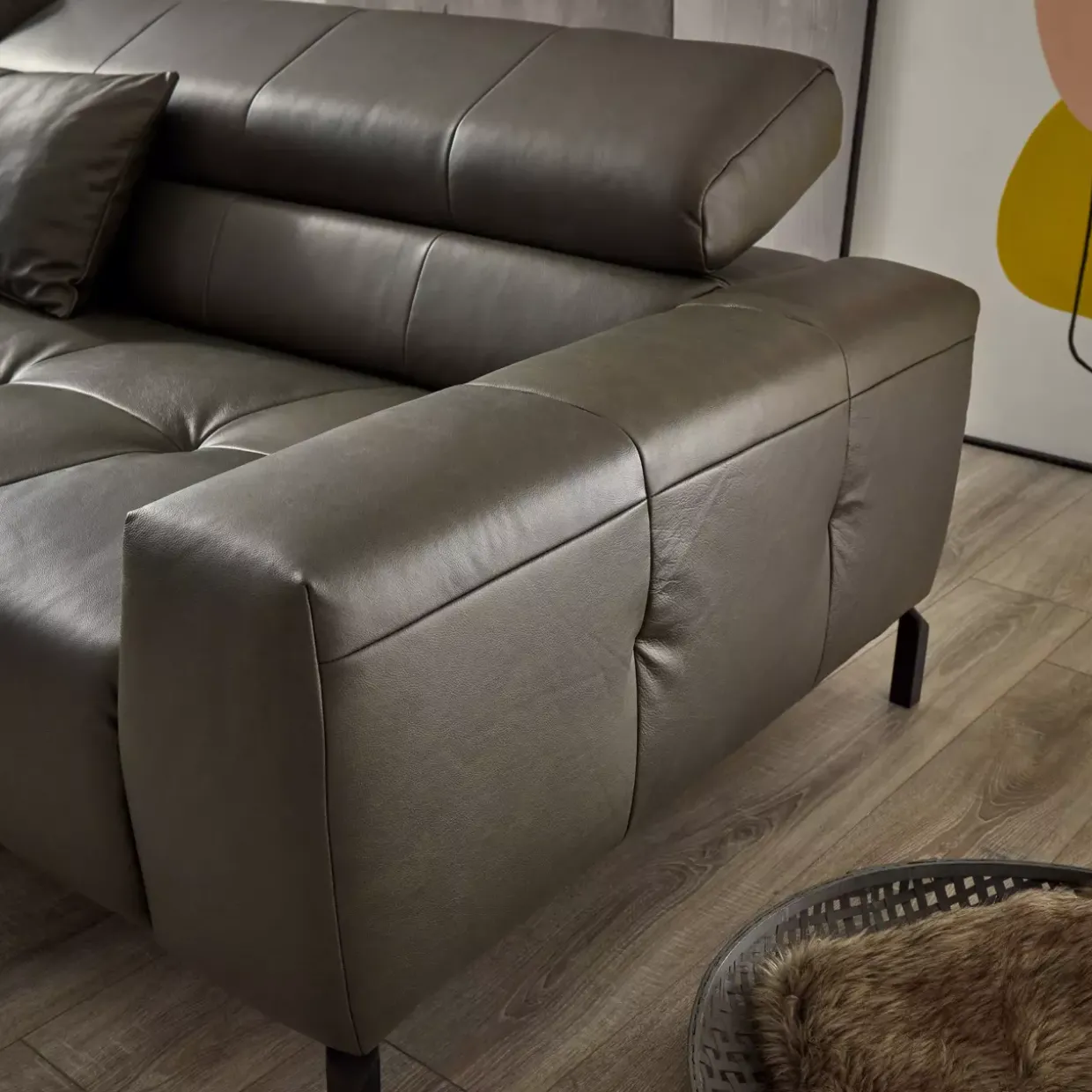 Vicenca olive verleiht der Polstergarnitur Cleveland einen Hauch von natürlicher Eleganz, der in jedem Loft-Ambiente ein stilvolles Statement setzt. Die legere, weiche Polsterung aus hochwertigem PUR-Schaum bietet einen unvergleichlichen Sitzkomfort, der zum Verweilen einlädt. Der subtile Kontrast zwischen dem edlen Leder und den schwarzen, mattierten Metallelementen verleiht dem Design eine moderne Note.