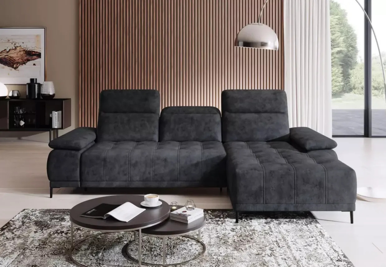 Salvador Anthracite und Schwarz harmonieren perfekt und ergänzen die moderne Inneneinrichtung. Ein weiteres bemerkenswertes Merkmal ist die integrierte Kopfstützenvorrichtung. Drei verstellbare Kopfstützen bieten individuellen Komfort und passen sich Ihren Bedürfnissen an.