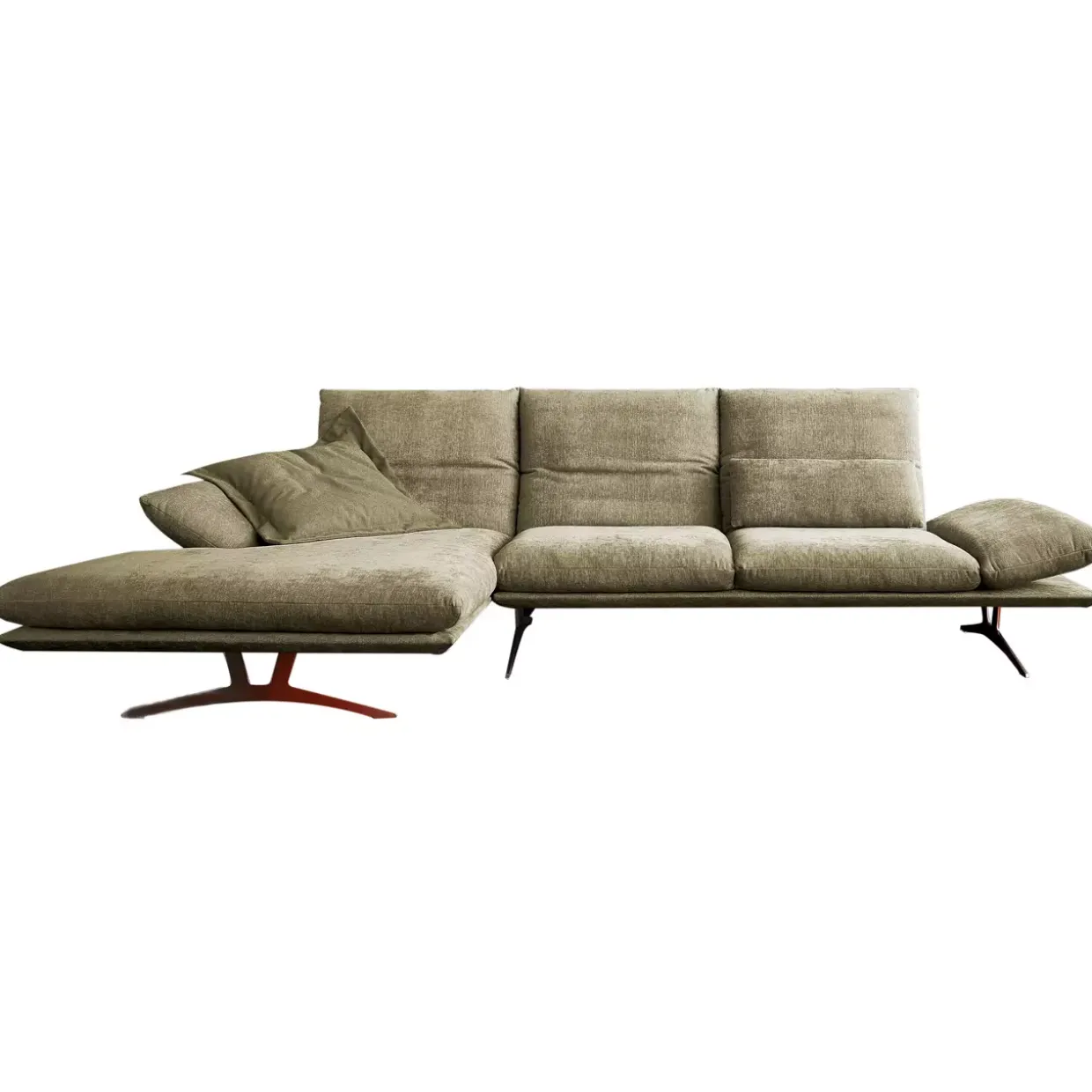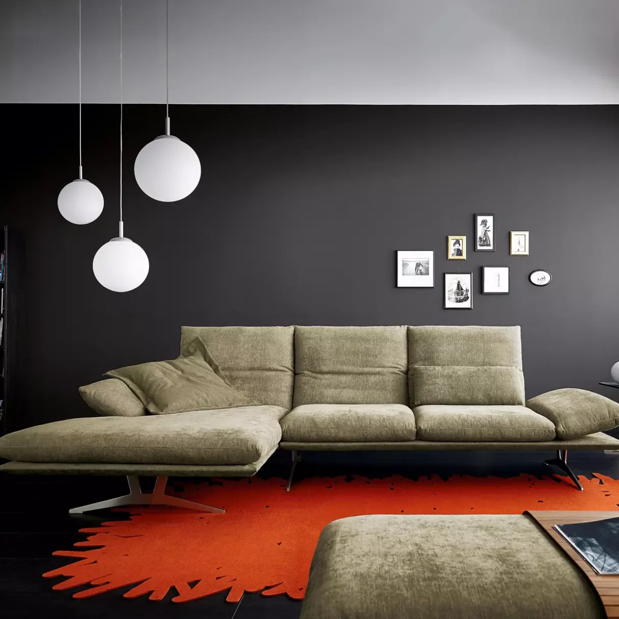 Das Modell ist freistellbar und der Rücken ist echt bezogen, was eine flexible Raumgestaltung ermöglicht. Optional sind passende Kissen erhältlich, die das Gesamtbild abrunden.