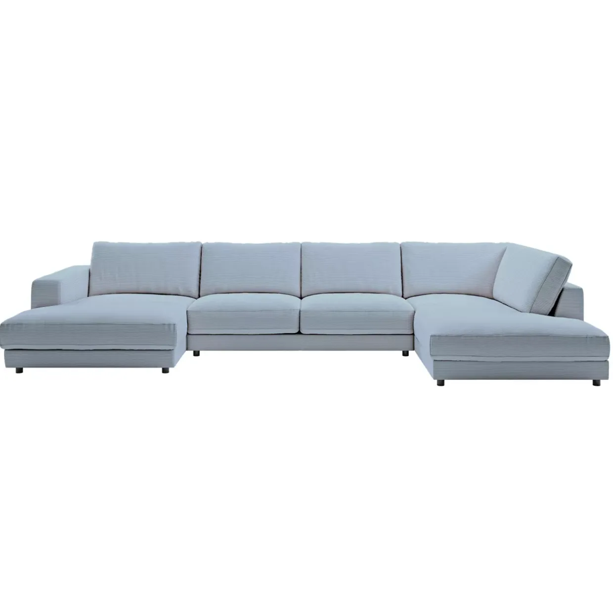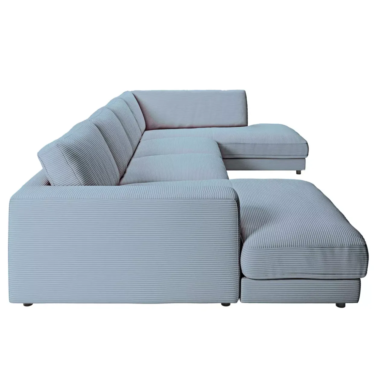 Die Hagerstown Polstergarnitur präsentiert sich in einem modernen Stil, der durch den eleganten light-blue Cordstoff unterstrichen wird. Der Cordstoff verleiht dem Möbelstück eine außergewöhnliche Haptik und sorgt für eine angenehme Sitzoberfläche. Die Fußform mit Gleitern sorgt für Stabilität und verleiht der Garnitur einen schwebenden Look, der perfekt in ein zeitgemäßes Wohnambiente passt.