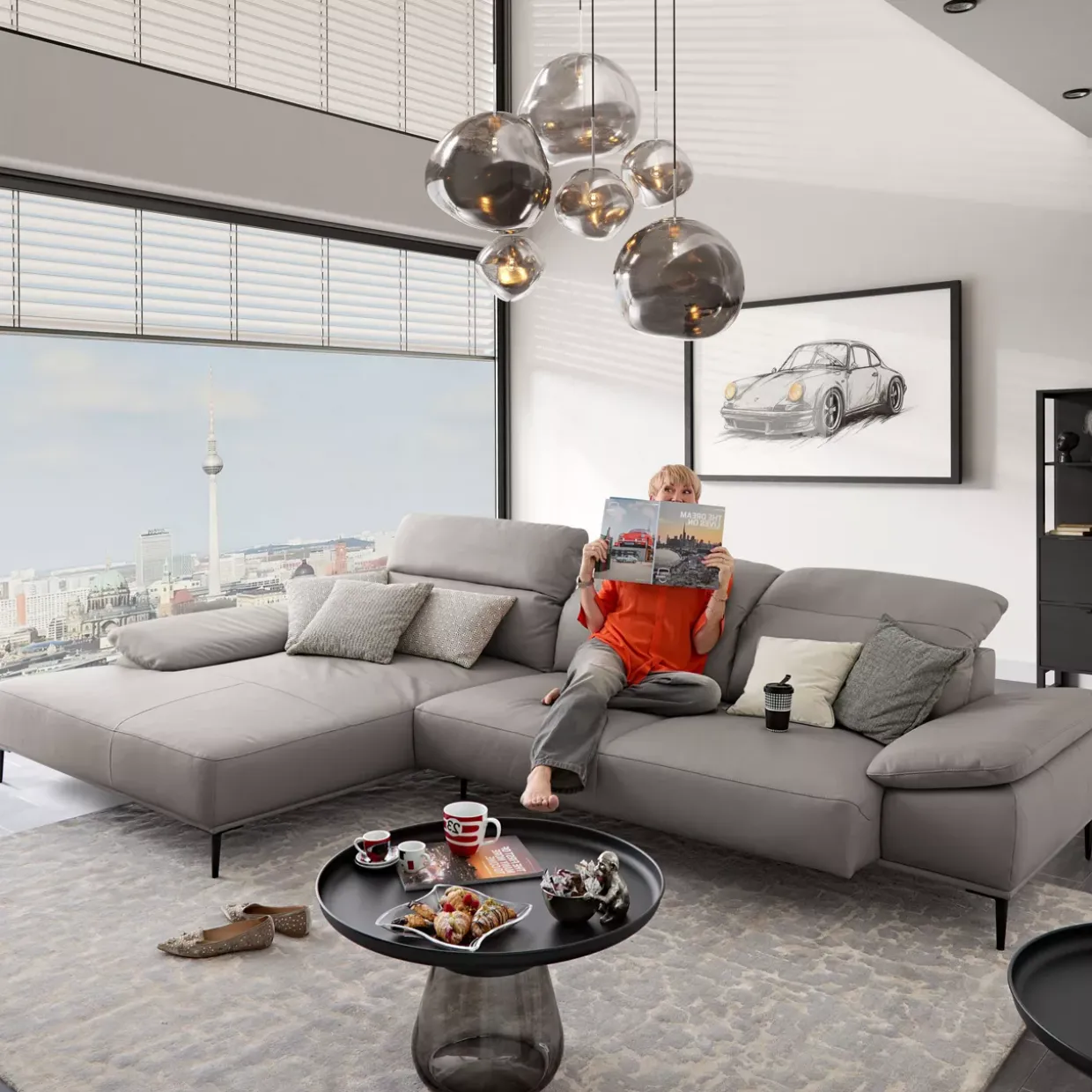 Zusatzmaße: Longchair groß 145x206x81cm(Abschlusselement links) / Schenkelmaß 206x343cm / Rückenhöhe 81-98cm / Sofa groß mit Seitenteil 198x105x81cm
