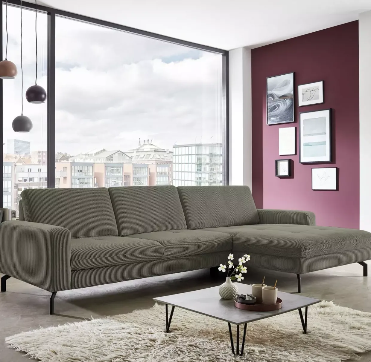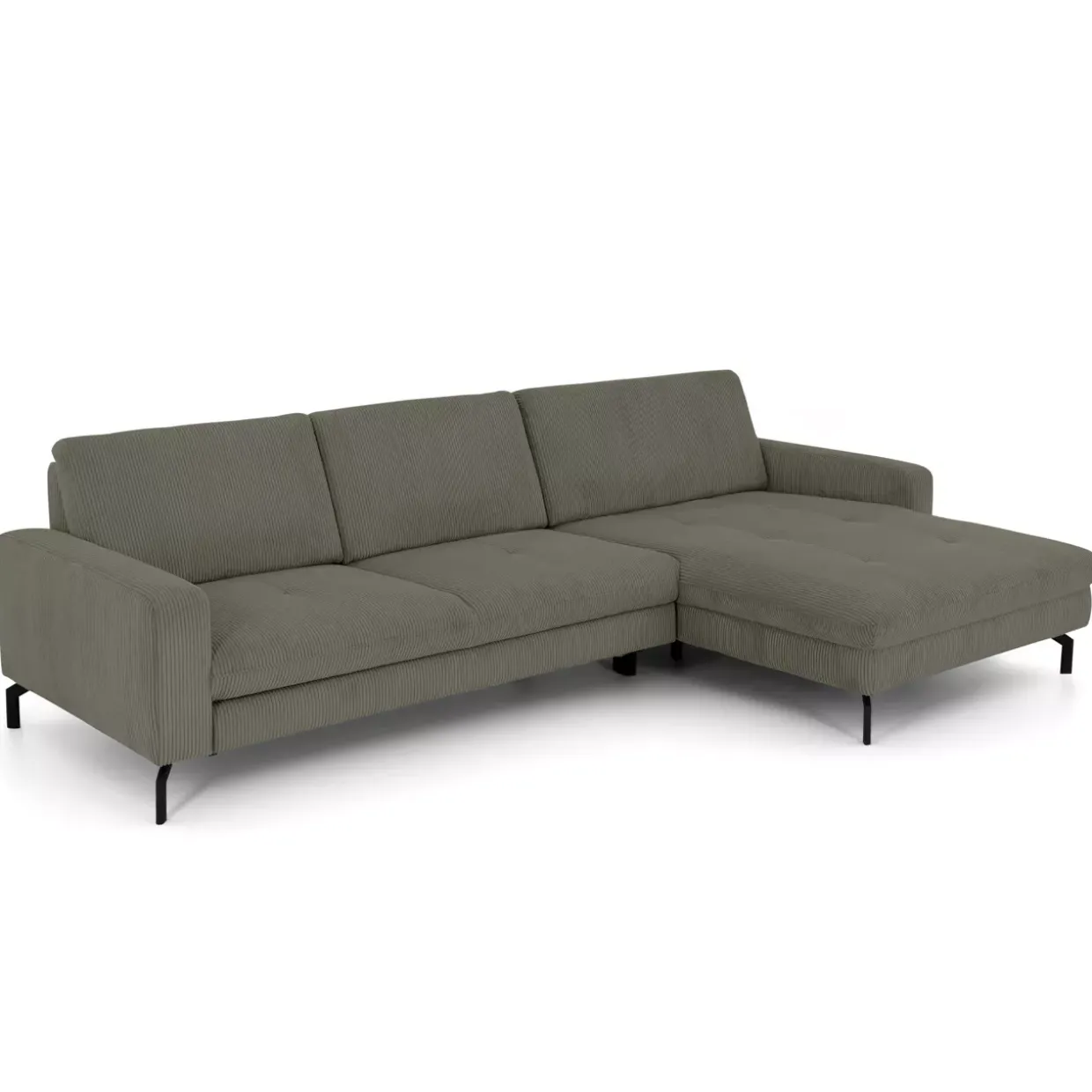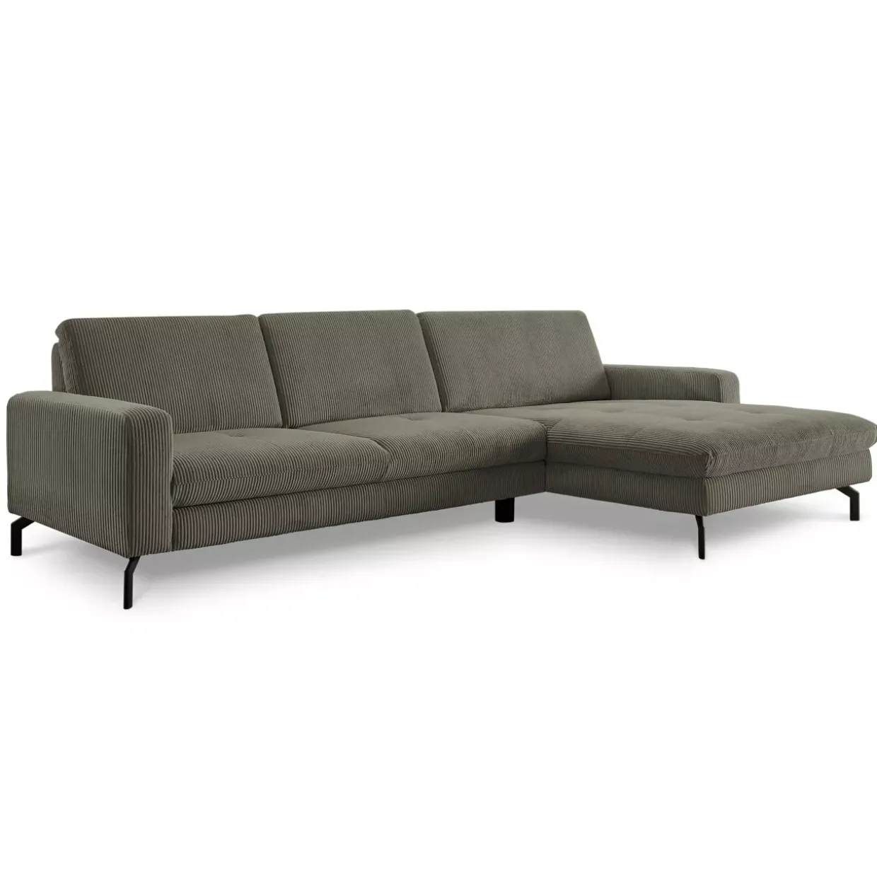 Die Polstergarnitur strahlt durch die Kombination aus Stoff, Holz, Holzwerkstoff und Metall eine zeitlose Eleganz aus. Der Cordbezug verleiht dem Möbelstück eine angenehme Haptik und sorgt für ein gemütliches Ambiente. Ausgestattet mit einer Federkernpolsterung, bietet die Garnitur einen hohen Sitzkomfort, der zum Verweilen einlädt.