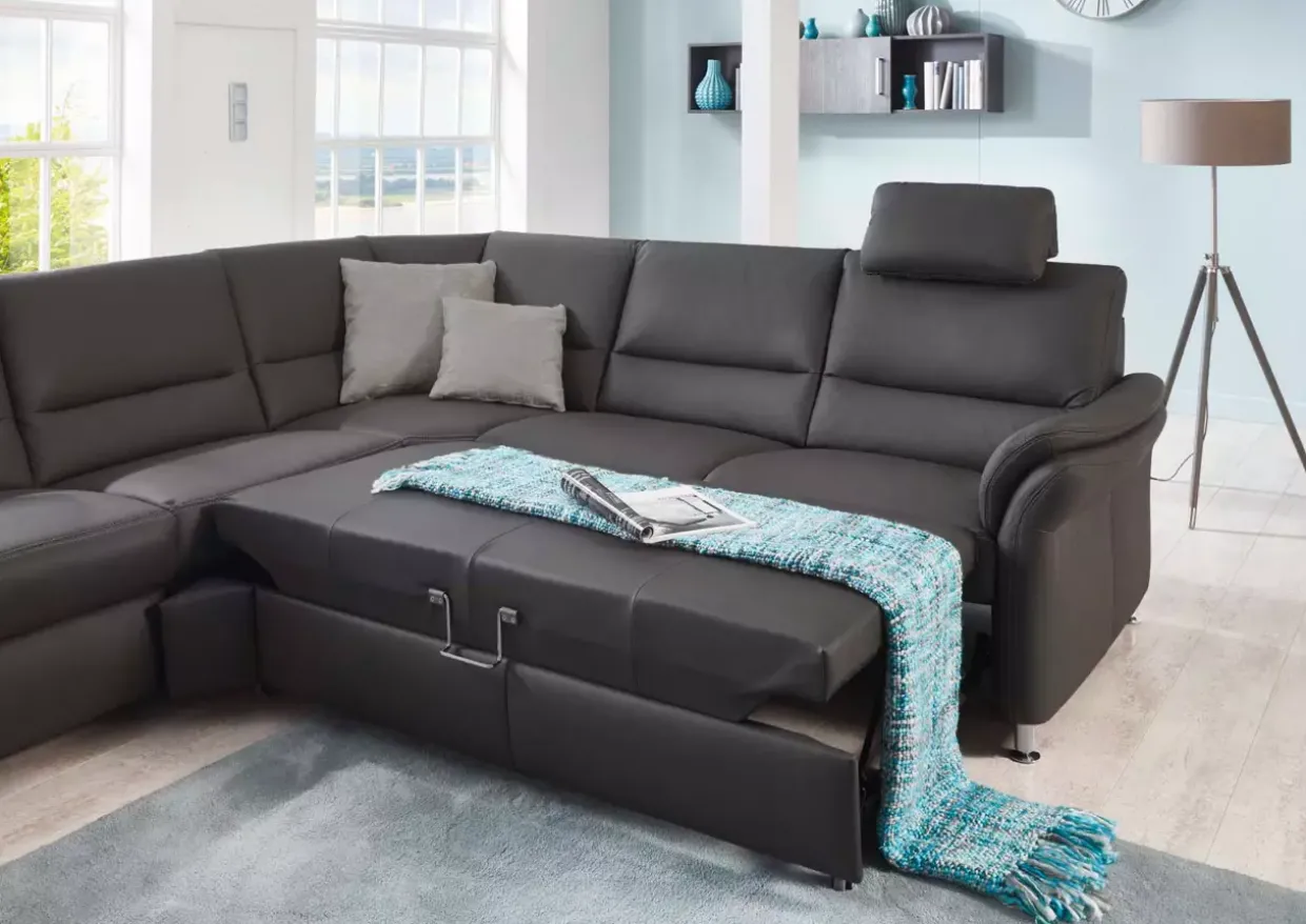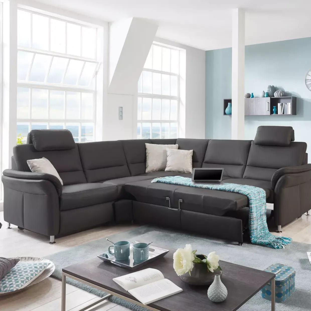 Die Premiumkopfstütze, verstellbar in Höhe und Neigung, setzt neue Maßstäbe in Sachen Komfort. Diese moderne Polstergarnitur vereint stilvolles Design mit durchdachten Funktionen. Mit ihrer Schlaffunktion verwandelt sie sich mühelos in einen gemütlichen Rückzugsort für entspannte Nächte. Die Kombination aus hochwertigem Leder und robustem Metall verleiht ihr ein zeitloses Erscheinungsbild, das sich harmonisch in jedes Interieur einfügt.