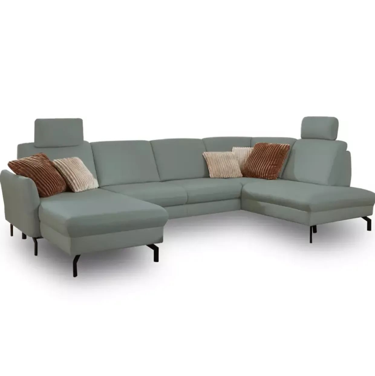 bestehend aus: 1 1er-Kombielement mit Anstellhocker rechts / 1 Canape mit Armlehne links / 1 2,5-Sitzer ohne Armlehne / 2 Kopfstützen