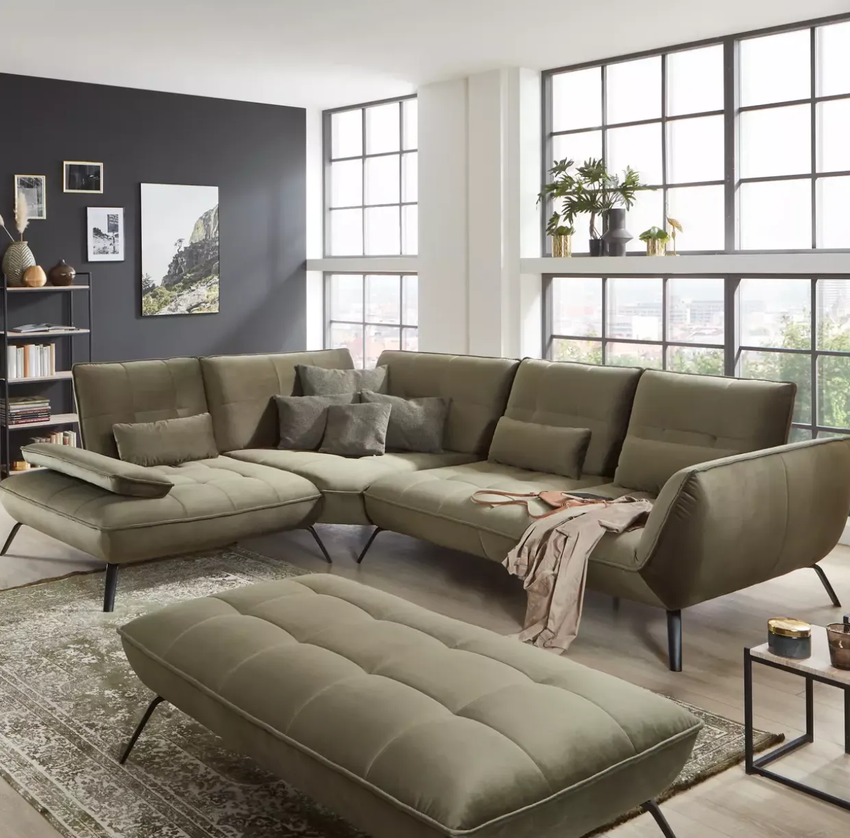 Riviera olive und schwarz matt – diese harmonischen Farben verleihen dem Modell Ticona einen modernen Stil, der in jedem Raum eine elegante Atmosphäre schafft. Die verwendete Buche in Kombination mit hochwertigen Materialien wie Stoff, Holzwerkstoff und Metall unterstreicht das zeitgenössische Design. Die Uni-Musterung des Polstergarsets trägt zur zeitlosen Optik bei. Ein besonderes Highlight sind die inkludierten Nierenkissen und der verstellbare Schwenkrücken im 1- und 3-Sitzer, die für maximalen Komfort sorgen. Flexibilität wird durch die freistellbare Konstruktion gewährleistet, die es Ihnen ermöglicht, das Möbelstück individuell in Ihrem Wohnbereich zu platzieren. Der Rücken ist echt bezogen, was die Qualität und Langlebigkeit unterstreicht.Praktische Anpassungen wie die Armteilverstellung oder der passende Hocker sind auf Anfrage gegen Mehrpreis erhältlich und bieten zusätzlichen Komfort. Die Breite der Armlehnen, Typ B mit etwa 24 cm und Typ A mit etwa 39 cm, bietet Ihnen eine angenehme Ablagefläche. Der Sitz mit PUR-Schaum auf Wellenfedern sowie der Rücken aus PUR-Schaum auf Gummigurtung garantieren ein angenehmes Sitzerlebnis.Die Ticona Polstergarnitur verbindet Funktionalität mit modernem Design und ist eine perfekte Ergänzung für ein stilvolles Zuhause.