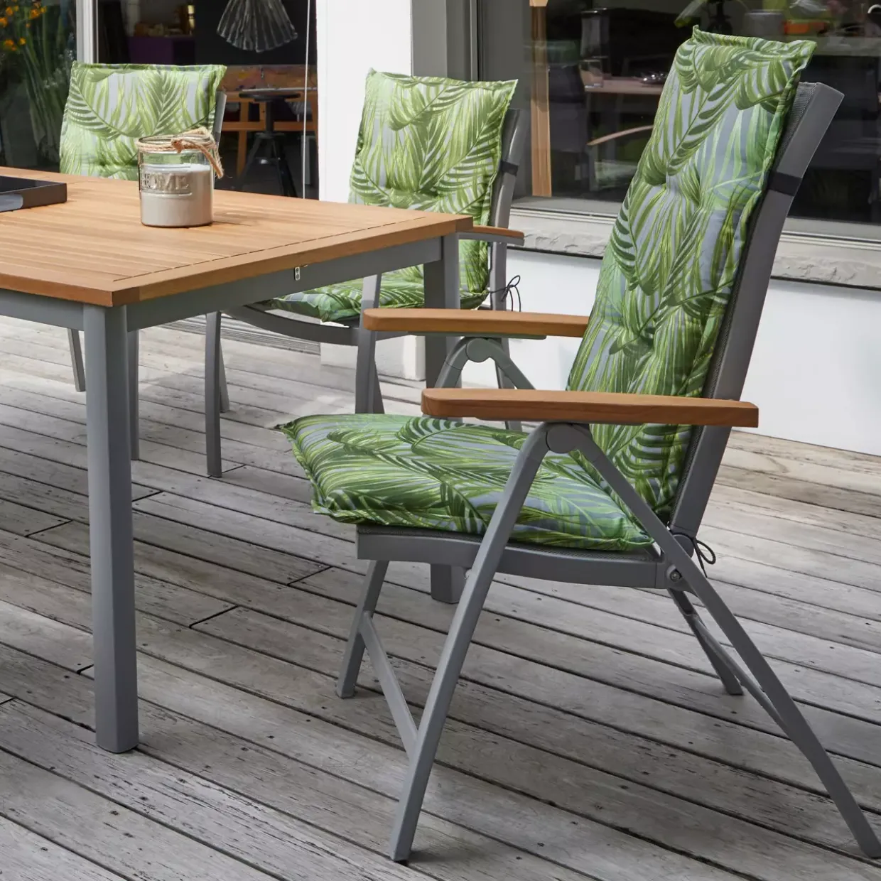 Ein Sommerabend auf der Terrasse wird zum Genuss, wenn Sie sich in die komfortable Sitzfläche des Positionsstuhls zurücklehnen. Das 4-Fußgestell bietet eine stabile Basis und verbindet Funktionalität mit einem Hauch von Raffinesse. Die Verwendung von hochwertigen Materialien wie Kunststoff, Textil, Metall und Holz sorgt für Langlebigkeit und Widerstandsfähigkeit gegen die Elemente.