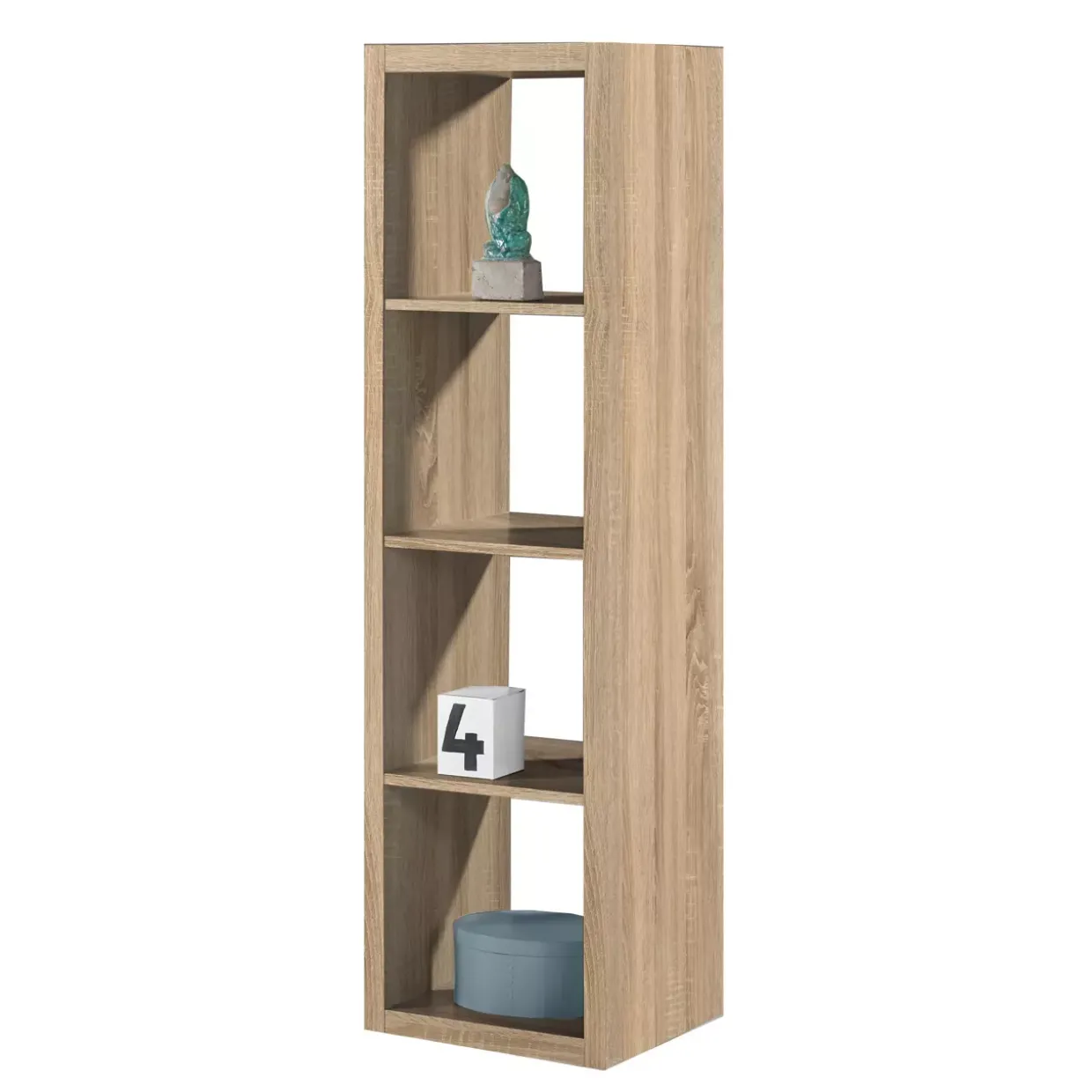 Eine weitere Besonderheit ist die durchdachte Aufteilung in vier gleich große Fächer. Diese bieten viel Platz für Bücher, Dekorationen oder persönliche Gegenstände und helfen dabei, Ordnung zu schaffen. Der Raumteiler ist somit ideal für diejenigen, die Wert auf Funktionalität und Ästhetik legen.