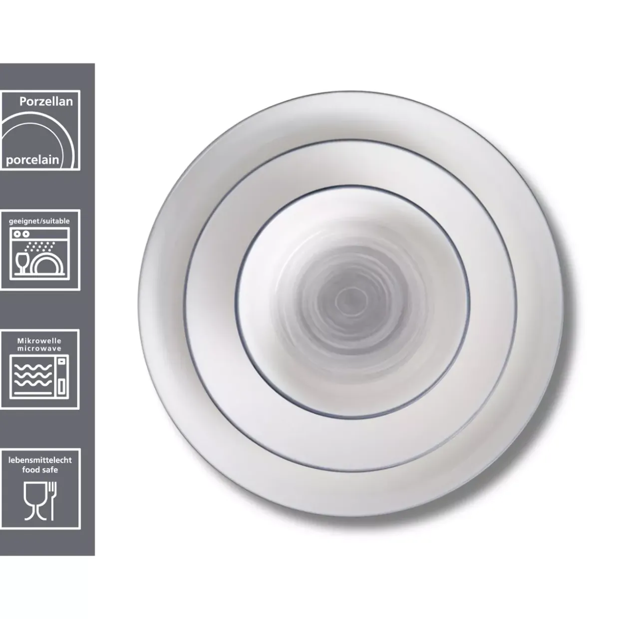 Zusatzmaße: Kaffeebecher: 330ml / Suppenteller: 14cm / Speiseteller: 27cm / Dessertteller: 21cm