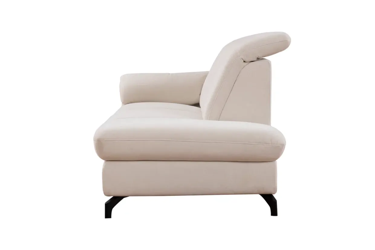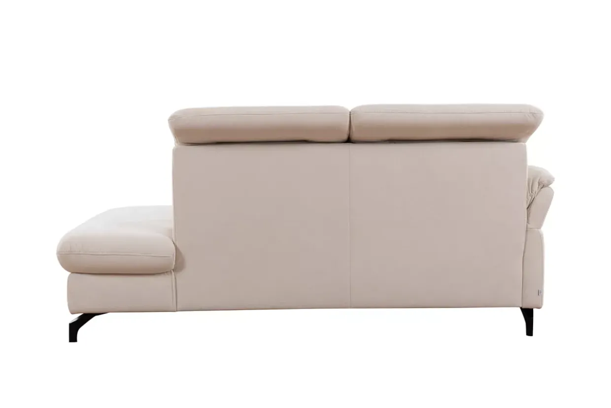 Mit einem Rückenbezug aus echtem Material bietet die Sardena Recamiere links eine elegante und authentische Ausstrahlung. Die perfekte Kombination aus Stoff und Metall verleiht diesem Möbelstück eine klare und moderne Ästhetik, die sich nahtlos in den beliebten Scandi-Stil einfügt. Die dezente Farbkombination aus Carlos Creme und Schwarz sorgt für ein harmonisches und zugleich kontrastreiches Erscheinungsbild.