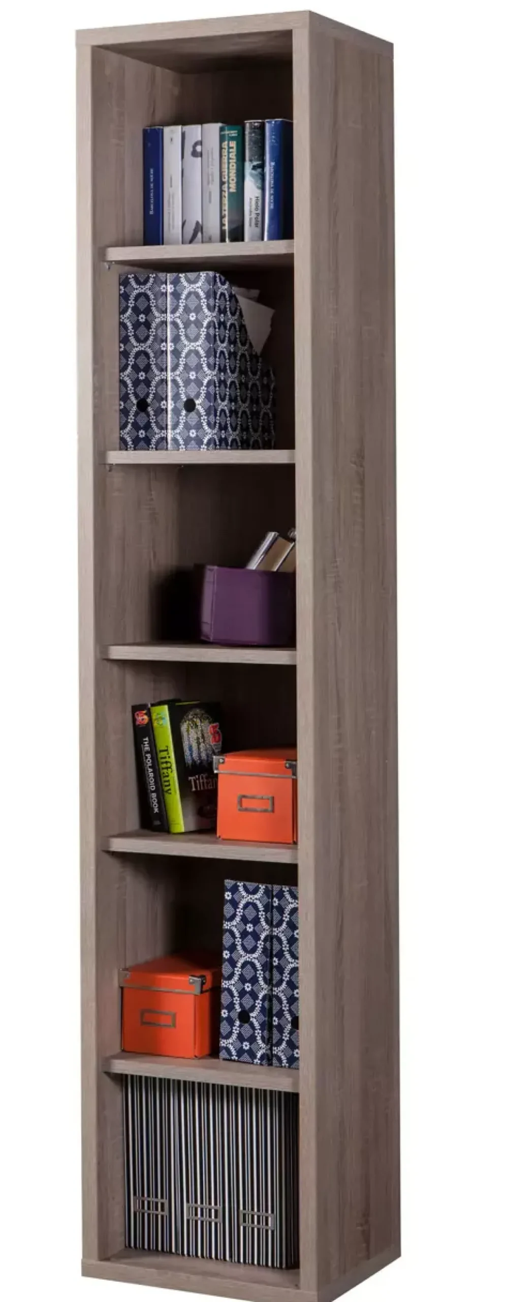 Mit seiner modernen Ausstrahlung fügt sich das schmale Regal Disegno harmonisch in jedes Interieur ein. Die warme Trüffel-Eiche-Farbe verleiht diesem Möbelstück eine natürliche Eleganz, die den Raum auf subtile Weise bereichert. Gefertigt aus hochwertigem Holzwerkstoff, kombiniert es Stabilität mit einer ansprechenden Optik.