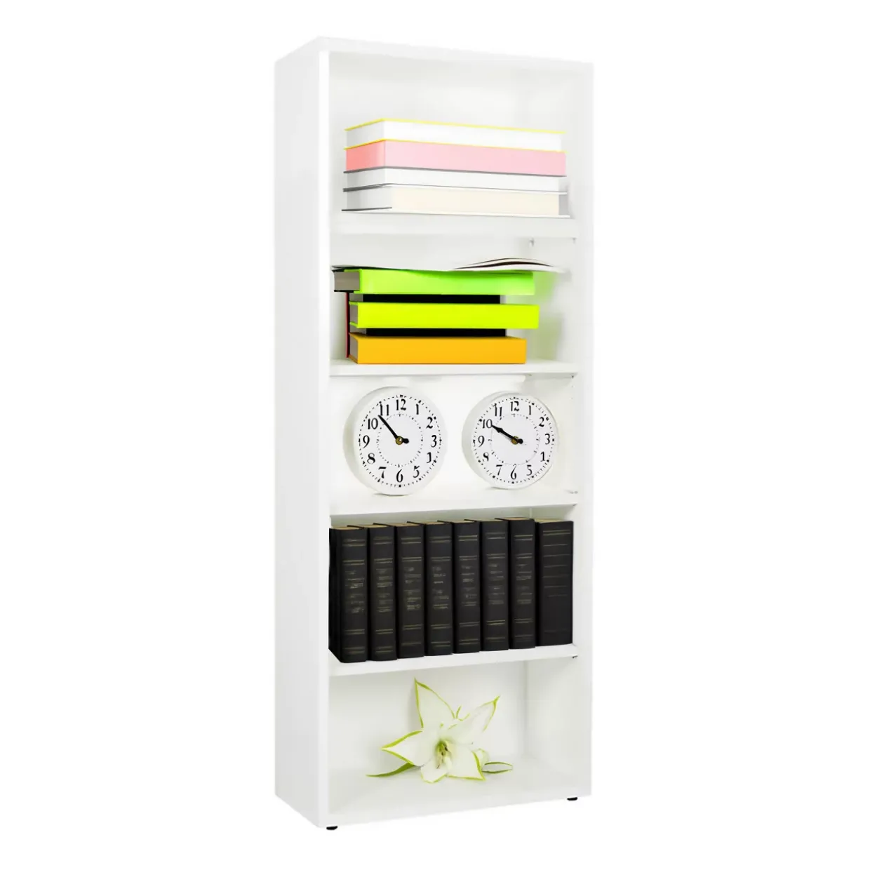 Ein Regal mit modernem Stil und zeitlosem Design bereichert jedes Interieur. Die Oberfläche, melaminharzbeschichtet und in elegantem Weiß gehalten, verleiht dem Möbelstück eine edle Anmutung. Der Espresso Regal bietet viel Stauraum und Flexibilität durch seine vier Einlegeböden, die individuell angepasst werden können.Aus hochwertigen Materialien gefertigt, verbindet das Regal Robustheit und Ästhetik. Holzwerkstoff und Metall bilden eine harmonische Einheit und gewährleisten Stabilität sowie Langlebigkeit. Die Gleiter-Fußform ermöglicht eine einfache Platzierung und schützt gleichzeitig den Bodenbelag vor Kratzern.Ideal für Wohn- oder Arbeitszimmer, vereint dieses Möbelstück Funktionalität und Stil. Die vier Regalelemente bieten ausreichend Platz für Bücher, Dekorationen oder andere persönliche Gegenstände und helfen dabei, Ordnung zu schaffen. Die moderne Ästhetik macht das Möbelstück zu einem vielseitigen Begleiter in verschiedenen Einrichtungsstilen.Die klare Linienführung und die dezente Farbgebung fügen sich nahtlos in jede Umgebung ein. Für alle, die Wert auf Qualität und Design legen, ist dieses Regal eine ausgezeichnete Wahl. Es besticht durch seine durchdachte Konstruktion und die Möglichkeit, persönliche Akzente zu setzen. Eine stilvolle Ergänzung für jedes Zuhause.
