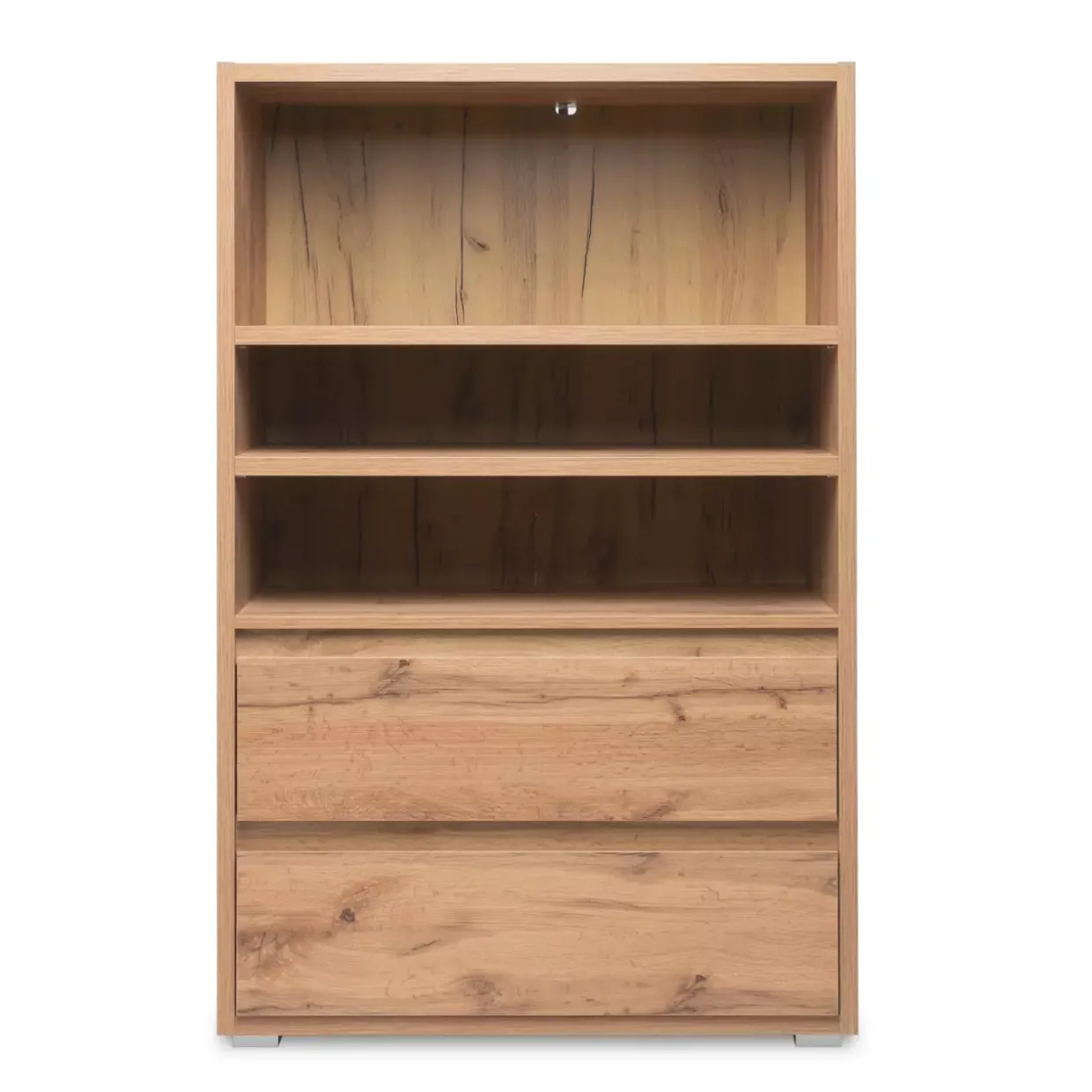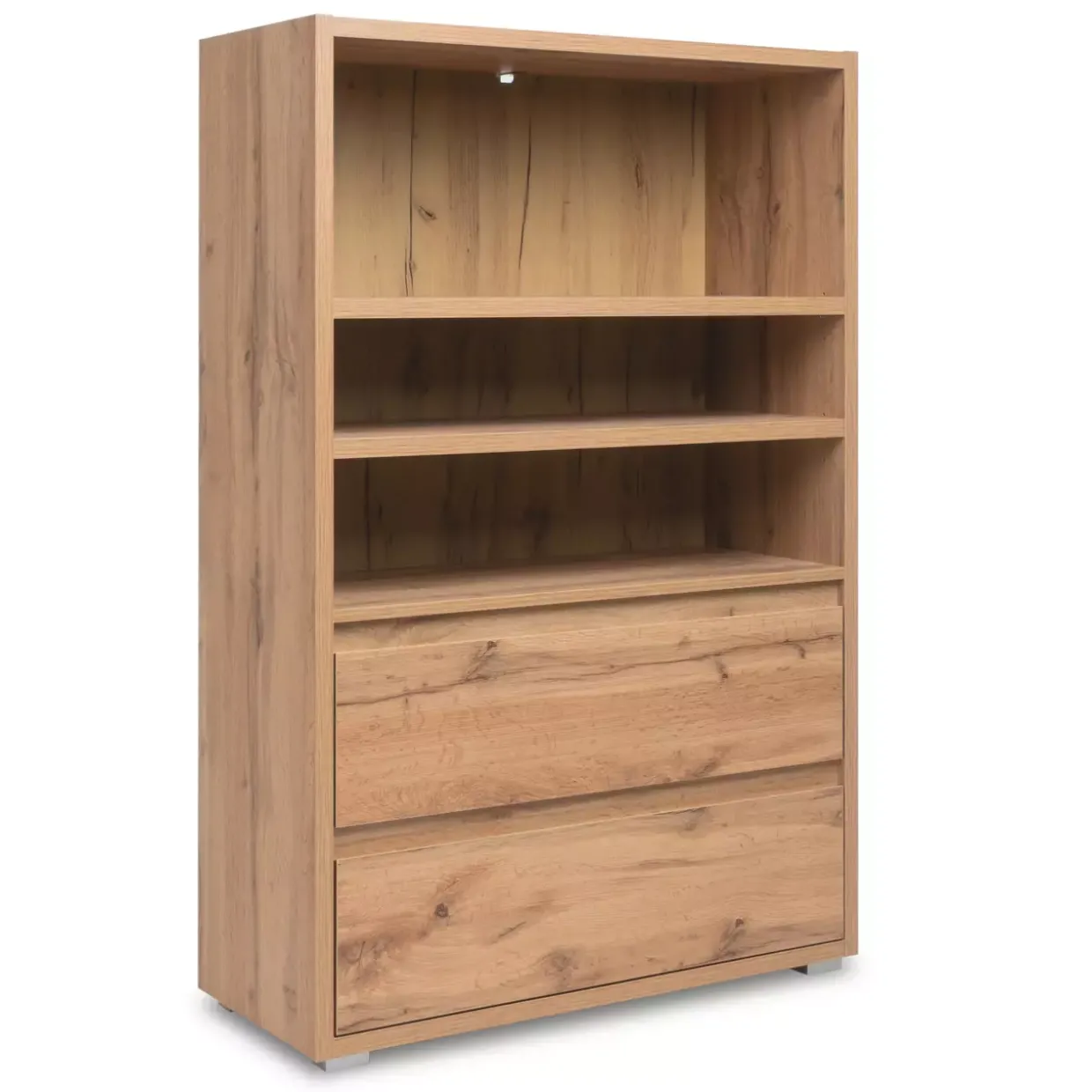 Ein Hauch von Modernität zieht mit dem Image Regal in Ihr Zuhause ein. Die edle Kombination aus Honigeiche und alufarbigem Design verleiht diesem Möbelstück eine warme und zugleich elegante Ausstrahlung. Es ist mehr als nur ein Stauraum; es ist eine harmonische Verbindung von Stil und Funktionalität.