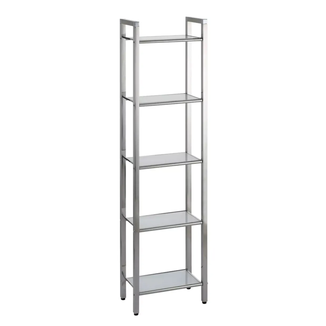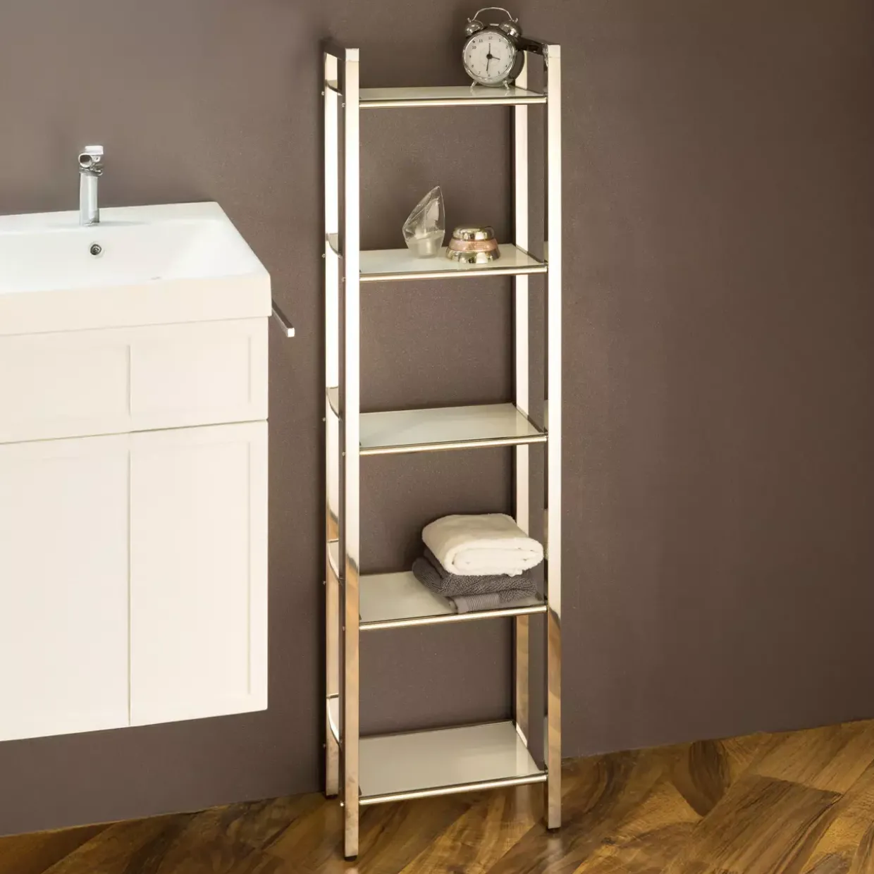 Ein Hauch von Retro-Charme: Das Regal aus hinterlackiertem Glas beeindruckt mit seiner eleganten weißen Oberfläche. Diese Kombination aus klassischem Stil und modernem Design bringt eine raffinierte Note in jeden Raum. Die Faszination liegt in den Details: Edelstahl als Metallart sorgt für eine stabile und langlebige Struktur, die sowohl funktional als auch ästhetisch ansprechend ist.Stilvolle Ordnung leicht gemacht. Mit fünf großzügigen Ablagen bietet das Regal ausreichend Platz, um Ihre Lieblingsgegenstände oder Bücher stilvoll zu präsentieren. Die klare Glasoptik unterstützt ein Gefühl von Leichtigkeit und Offenheit, das besonders in kleinen Räumen von Vorteil ist.Funktionalität trifft auf zeitlose Eleganz. Das Glasregal fügt sich nahtlos in verschiedene Einrichtungsstile ein und setzt gleichzeitig einen markanten Akzent. Ob im Wohnzimmer, Büro oder Flur – es verleiht jedem Raum eine besondere Note.Hinterlackiertes Glas sorgt nicht nur für eine einzigartige Optik, sondern auch für eine pflegeleichte Oberfläche, die den Alltag erleichtert. Genießen Sie die Verbindung von Qualität und Design, die Ihnen nicht nur Stauraum, sondern auch einen Hauch von Luxus bietet. Lassen Sie sich von der perfekten Symbiose aus Retro und Modernität inspirieren und entdecken Sie die Vielseitigkeit dieses Regals.