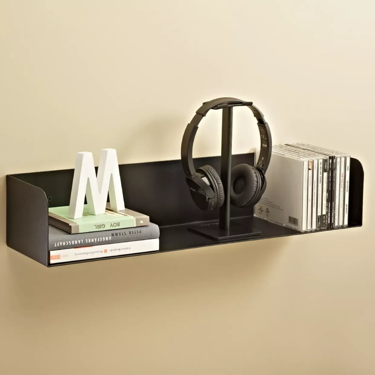 Die pulverbeschichtete Oberfläche ergänzt das Design, indem sie dem Regalboard einen edlen und zugleich widerstandsfähigen Charakter verleiht. Diese Beschichtung schützt das Metall effektiv vor Kratzern und Korrosion, was die Pflege und Erhaltung des ursprünglichen Aussehens erleichtert.