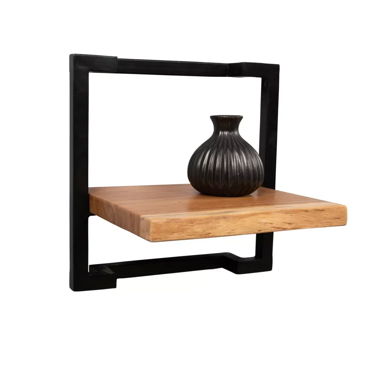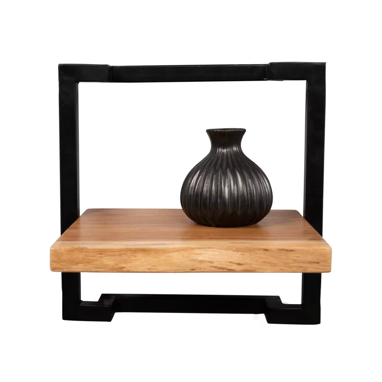 Akazie massiv vereint mit einem Hauch von Schwarz – das Angola 1 Regal präsentiert sich in einem modernen Stil, der Eleganz und Funktionalität vereint. Die natürliche Schönheit des Holzes wird durch die robusten Rahmen aus schwarzem Metall kunstvoll unterstrichen, was dem Möbelstück eine zeitlose Anmutung verleiht.