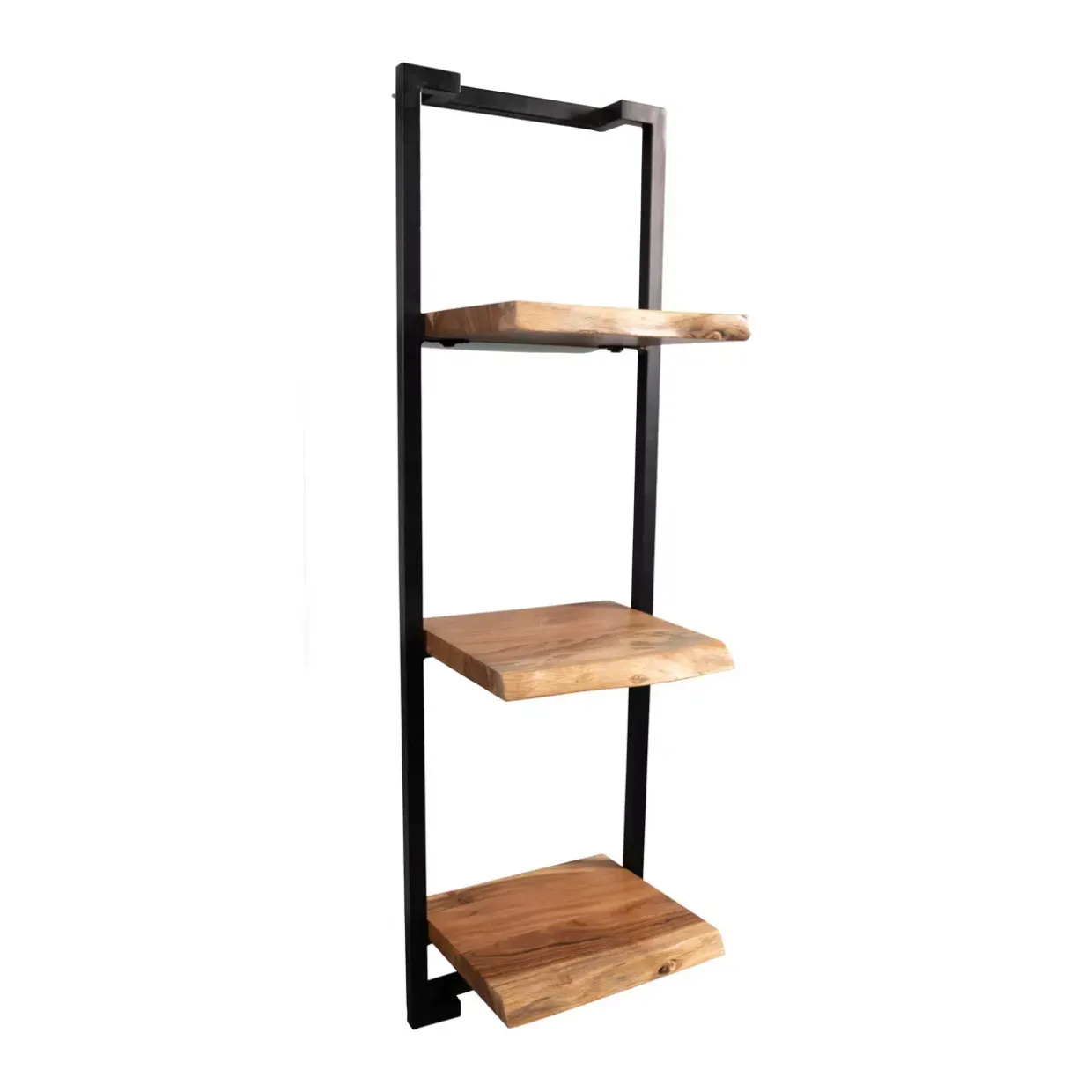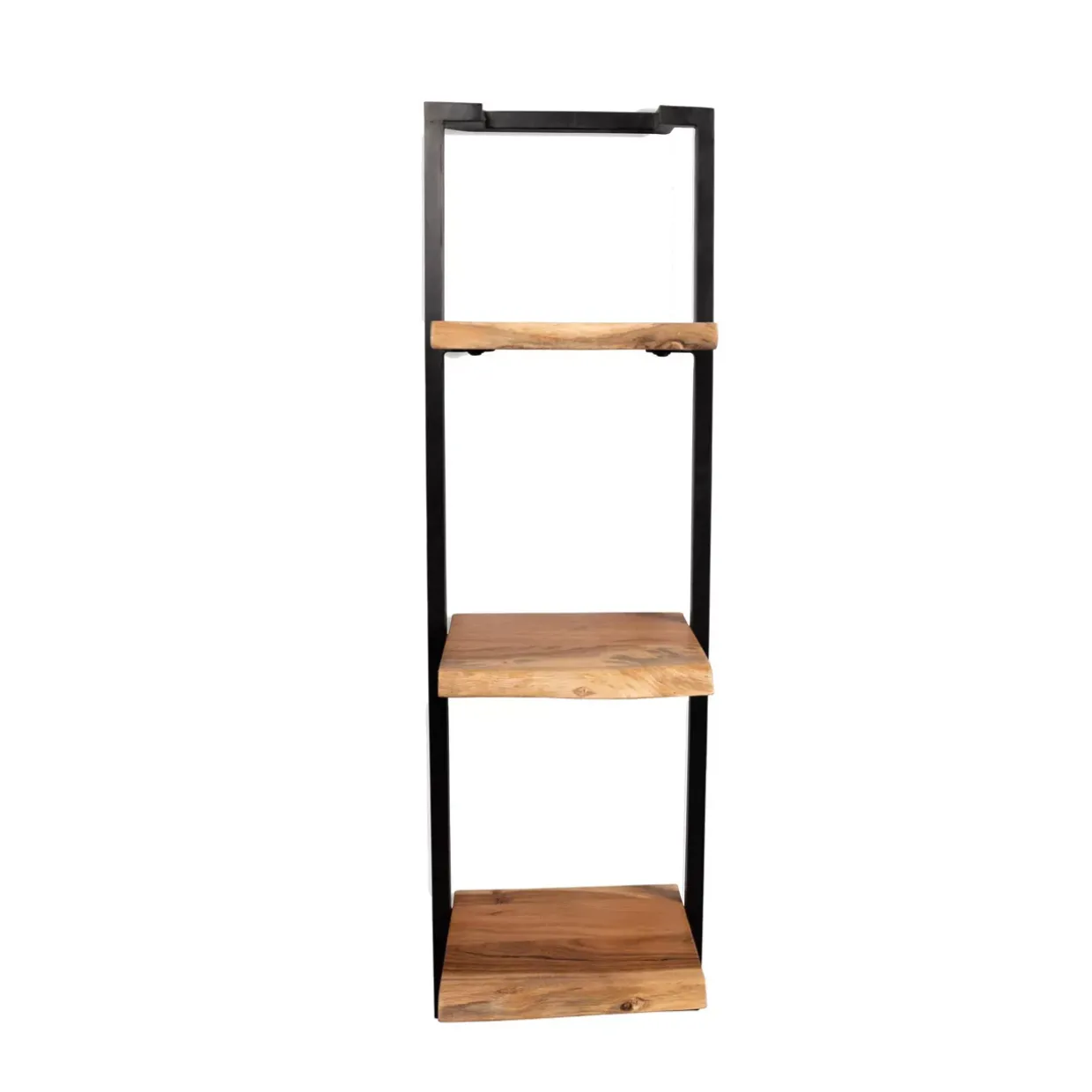 Akazie massiv mit schwarzem Rahmen: Diese harmonische Kombination prägt den modernen Stil des Angola 2 Regals. Eine elegante Verbindung aus Holz und Metall schafft ein zeitloses Design, das in jedem Raum einen stilvollen Akzent setzt.